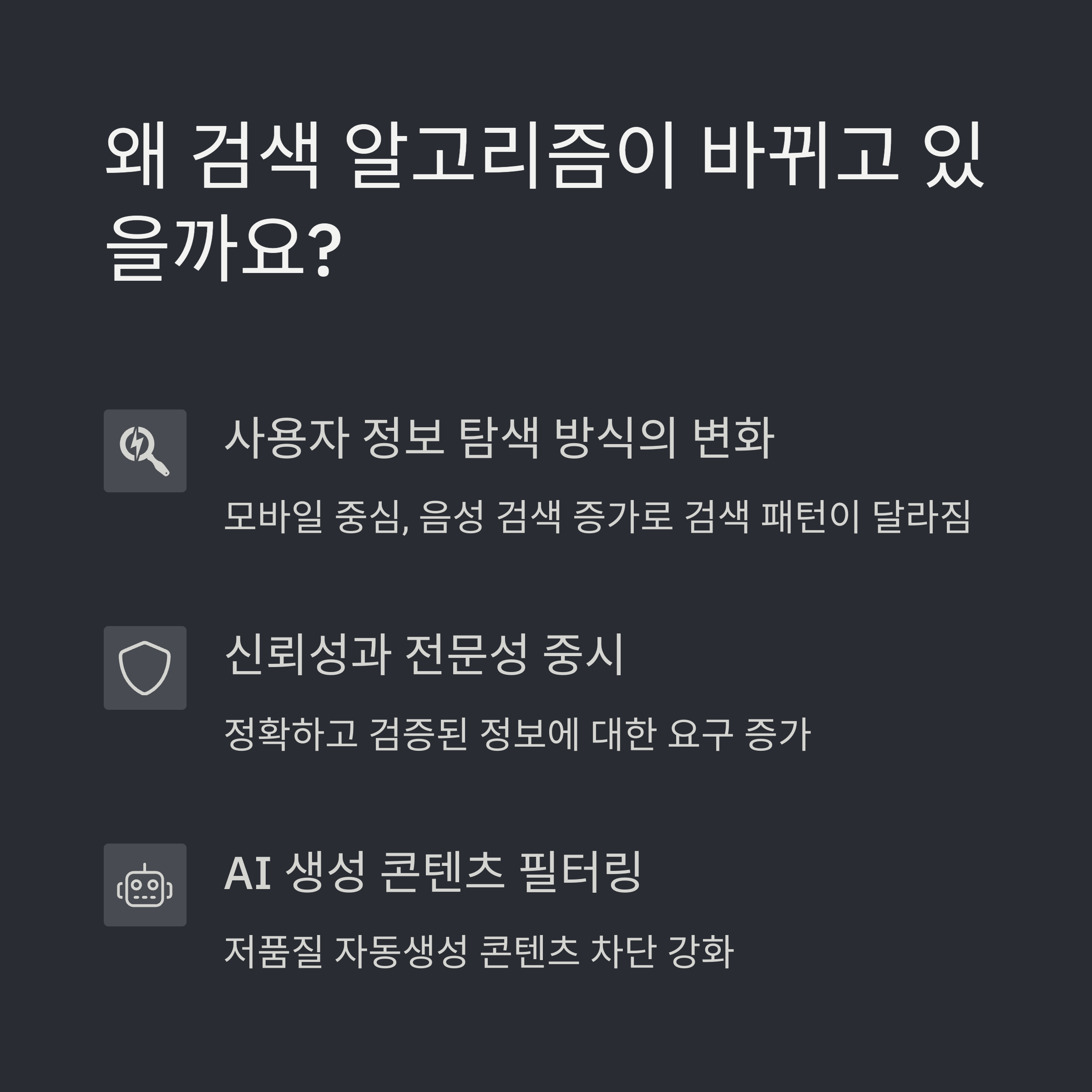 | 검색 의도 부합도 | 사용자가 실제 찾고자 하는 질문에 대한 명확한 답변 |