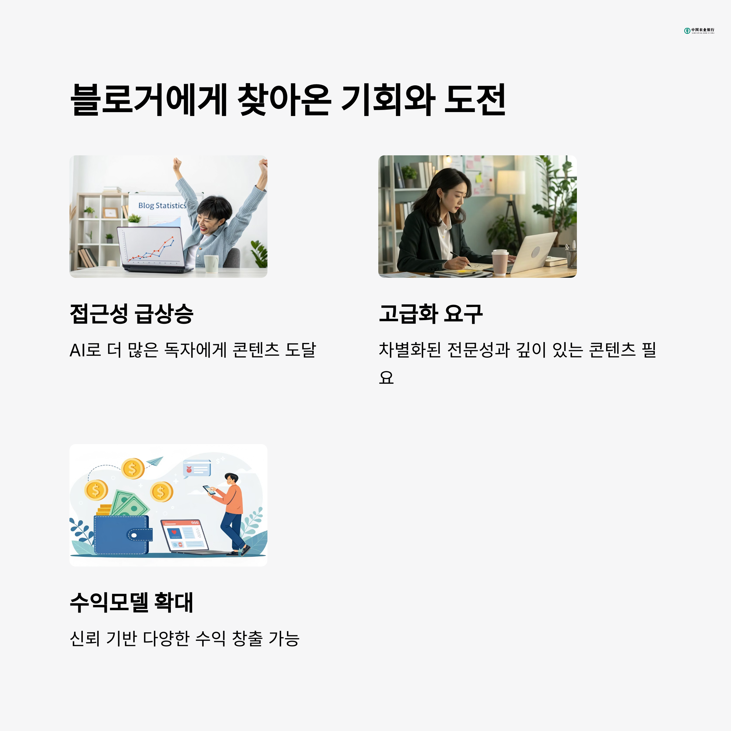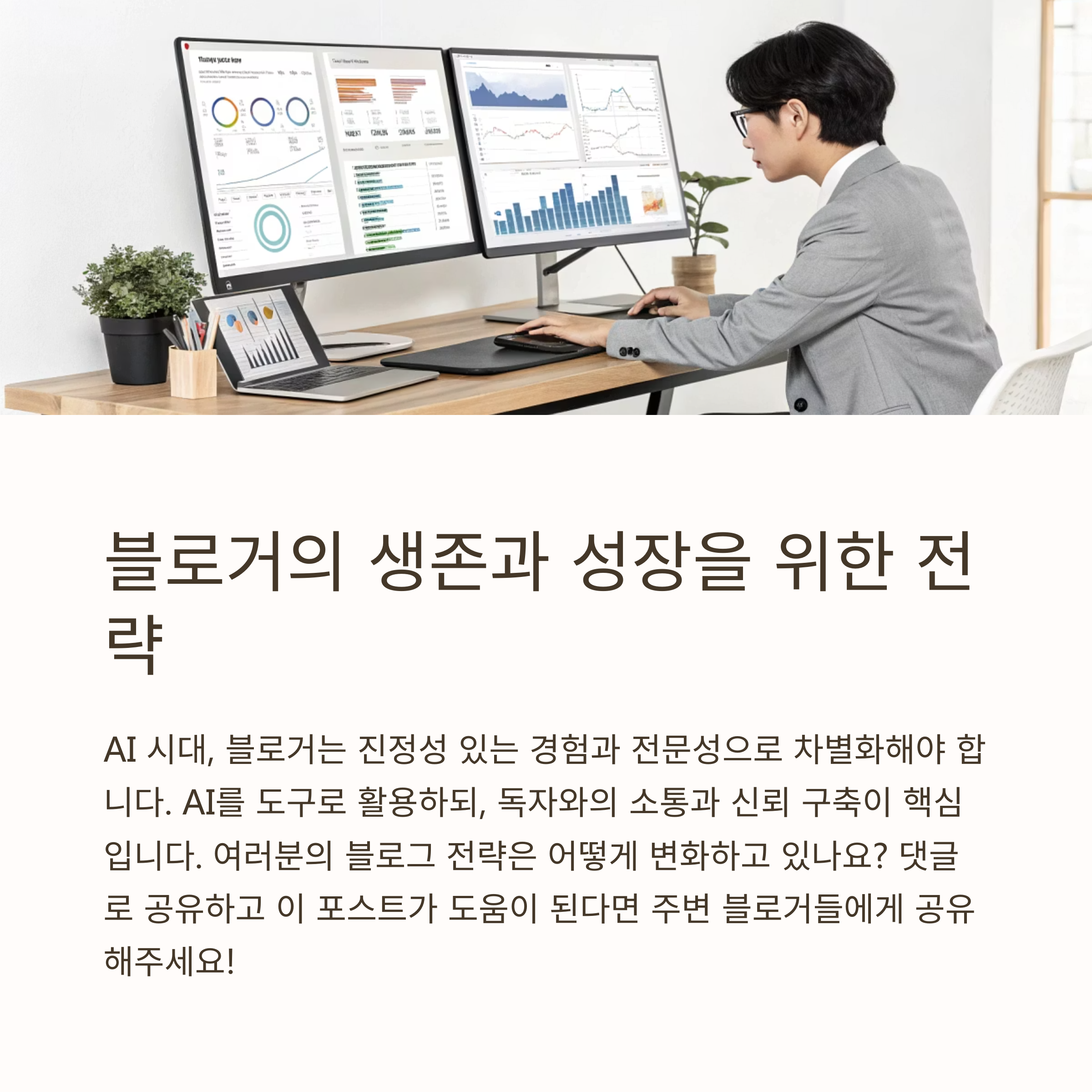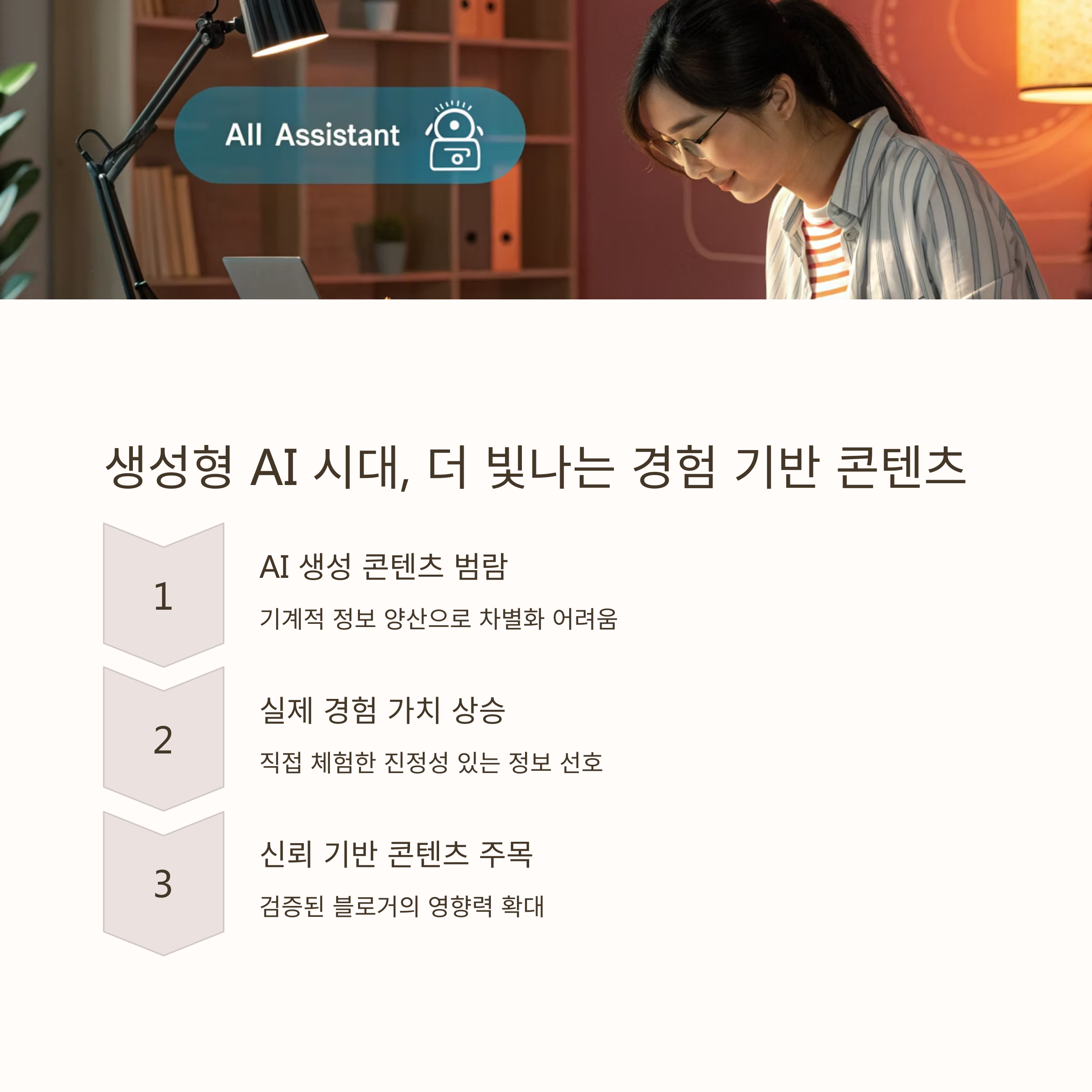 생성형 AI의 도입은 블로거들에게 새로운 도전이자 기회가 되고 있습니다. 단순 키워드 나열이나 자동화된 콘텐츠는 검색 노출이 어려워졌고, 반대로 경험과 신뢰를 담은 콘텐츠가 주목받고 있습니다. 이는 블로그 운영자에게 다음과 같은 영향을 미칩니다.