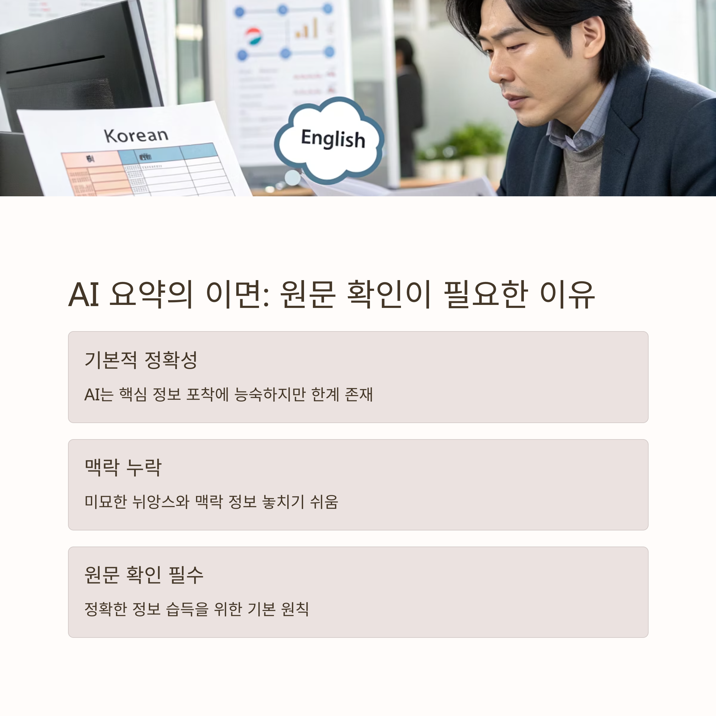 기본적인 요약은 정확하지만, 맥락을 왜곡할 수 있어 원문 확인이 중요합니다.