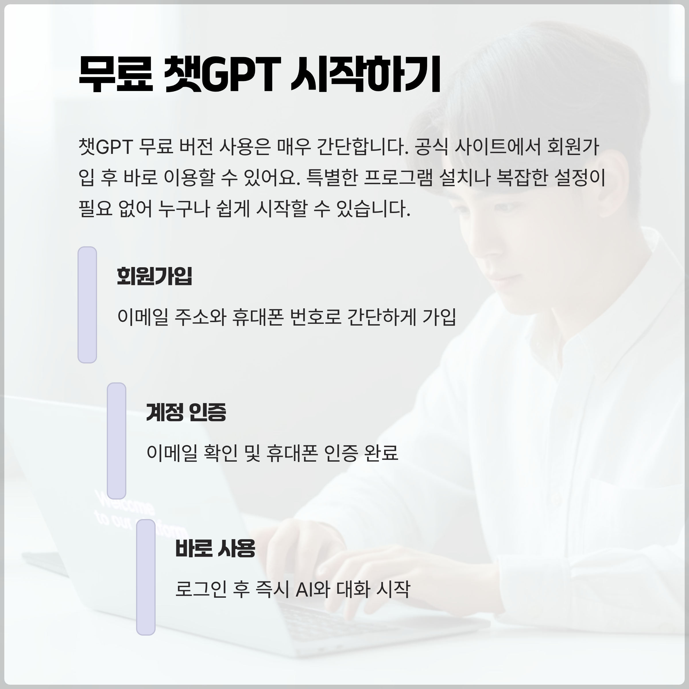 챗GPT 무료버전 사용은 매우 간단해요. 먼저, 공식 사이트에 접속해서 회원가입을 진행해야 해요. 이메일 주소와 휴대폰 인증만 거치면 누구나 쉽게 계정을 만들 수 있어요.