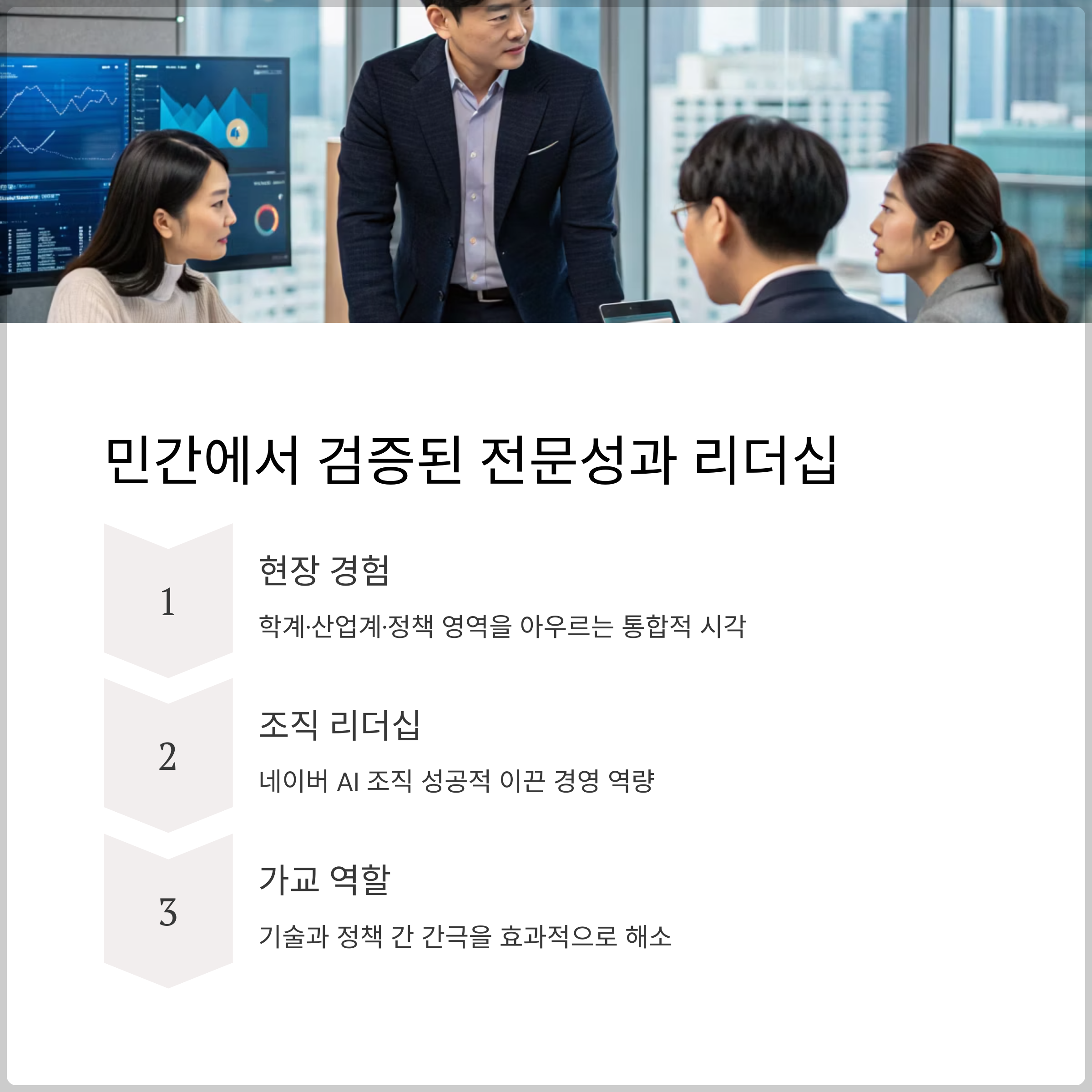 하정우 AI수석은 네이버클라우드 AI이노베이션센터장으로서 하이퍼클로바X 개발을 성공적으로 이끌며 탁월한 기술 전문성과 리더십을 증명했습니다. 그의 실질적인 경험은 이론에 그치지 않고 실제 산업 현장에 적용 가능한 AI 정책을 수립하는 데 큰 강점으로 작용할 것입니다. 또한, 국내외 AI 전문가들과의 폭넓은 네트워크는 글로벌 협력과 정보 교류를 활성화하여 대한민국 AI 생태계를 더욱 풍요롭게 만들 것으로 예상됩니다.