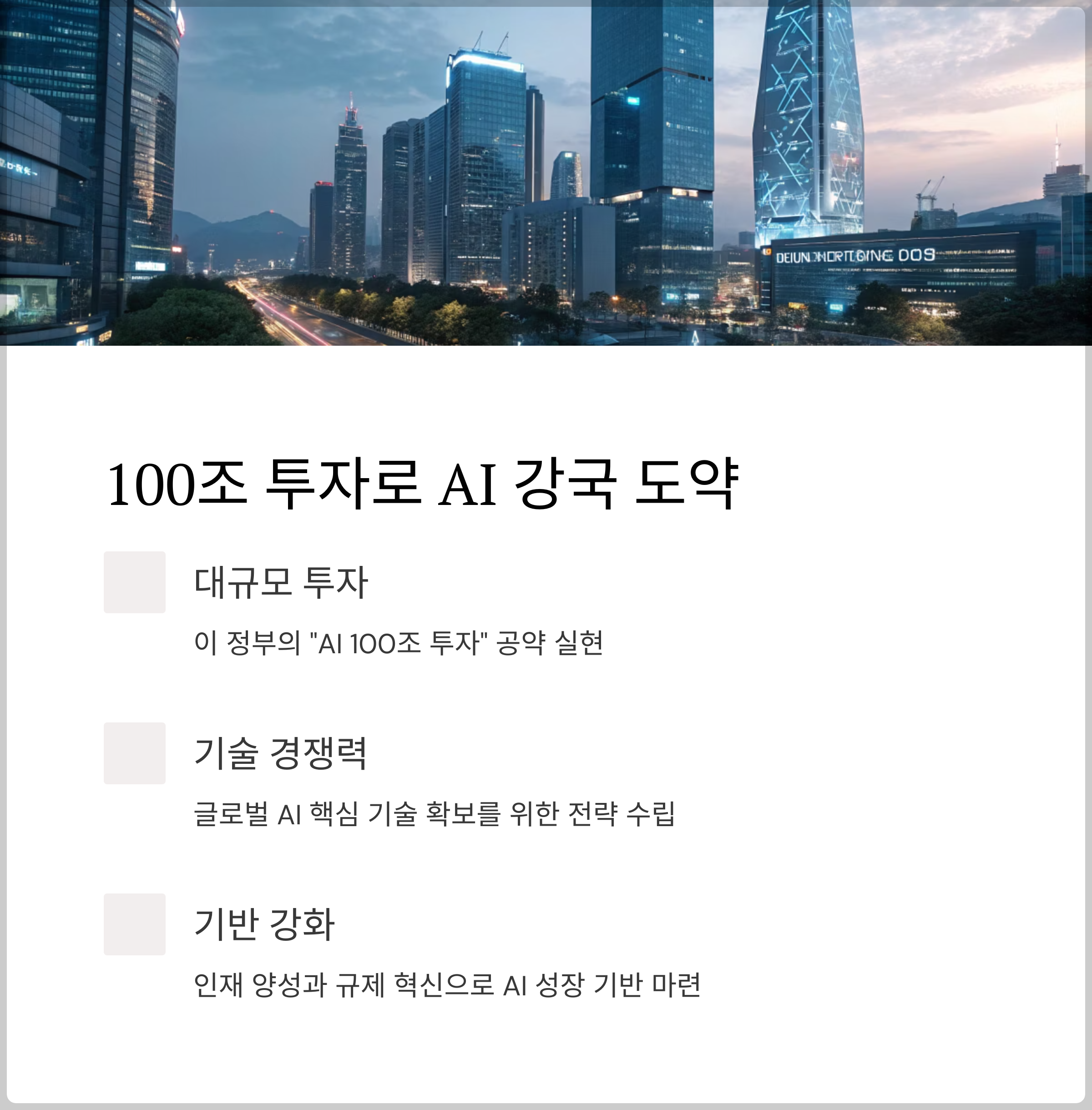 - 산업 경쟁력 강화: AI 기술을 통한 신산업 발굴 및 기존 산업 혁신