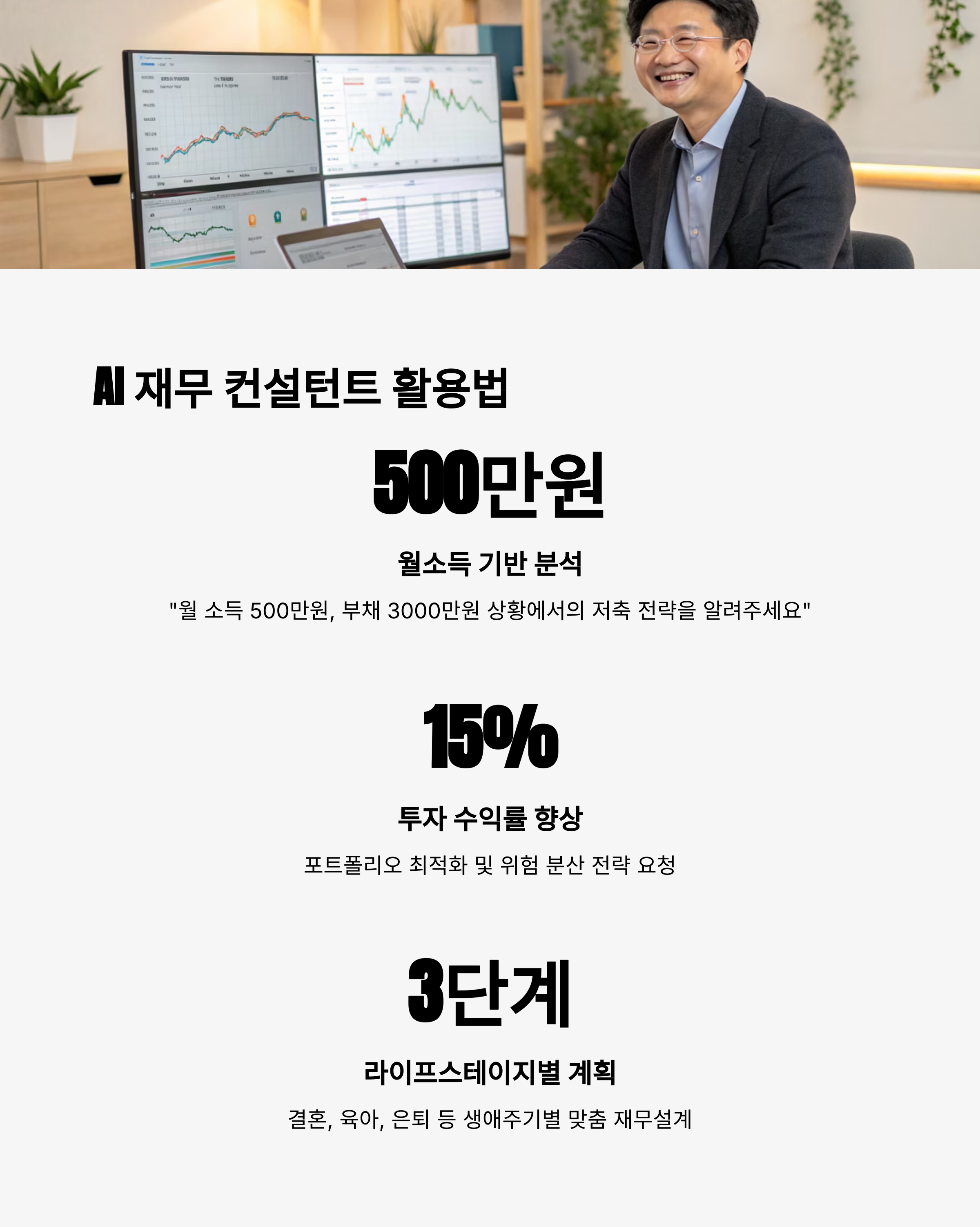 - 활용 방식: 소득, 지출, 투자 기간, 리스크 성향을 함께 입력하면 GPT가 금융 전략을 제안