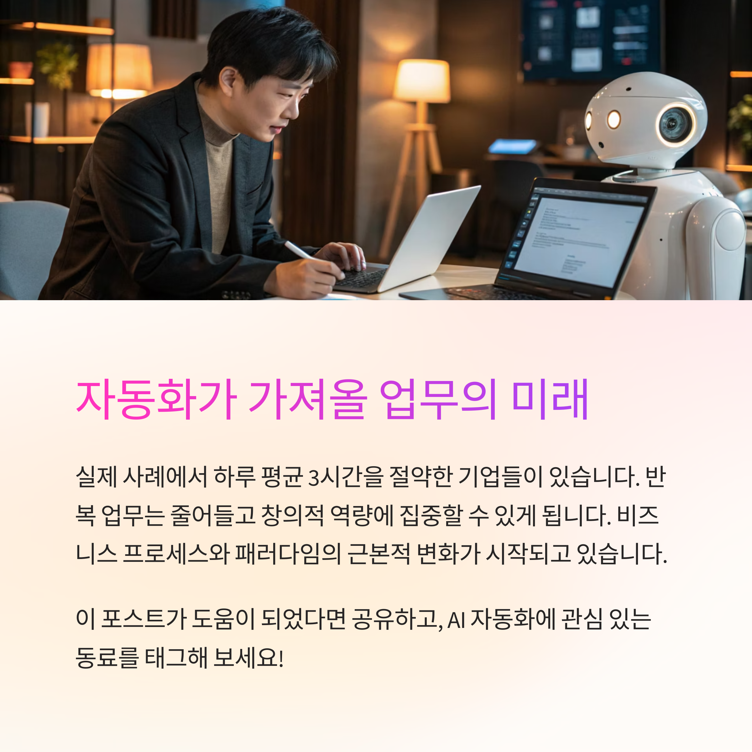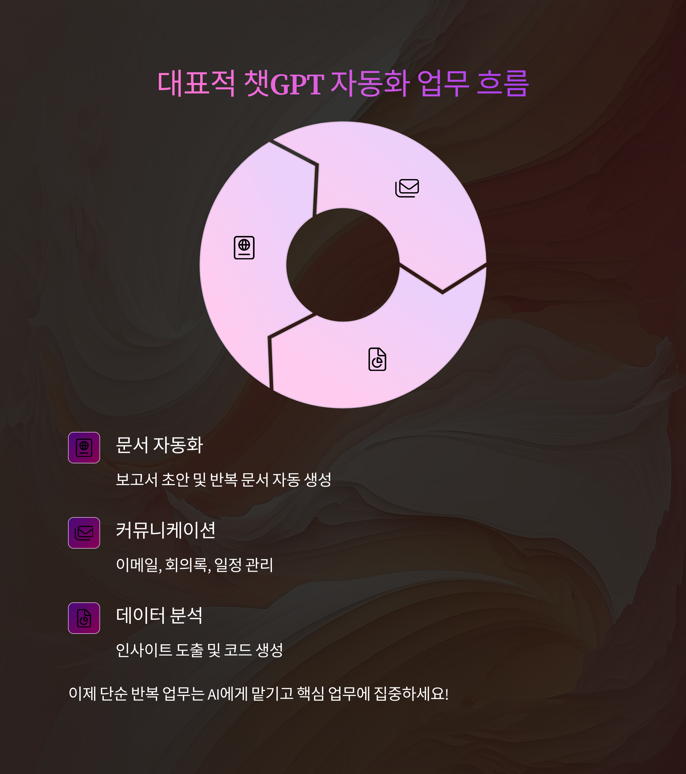 챗GPT 기반 자동화는 단순히 시간을 줄이는 것을 넘어 ‘일하는 방식’ 자체를 변화시키고 있습니다.