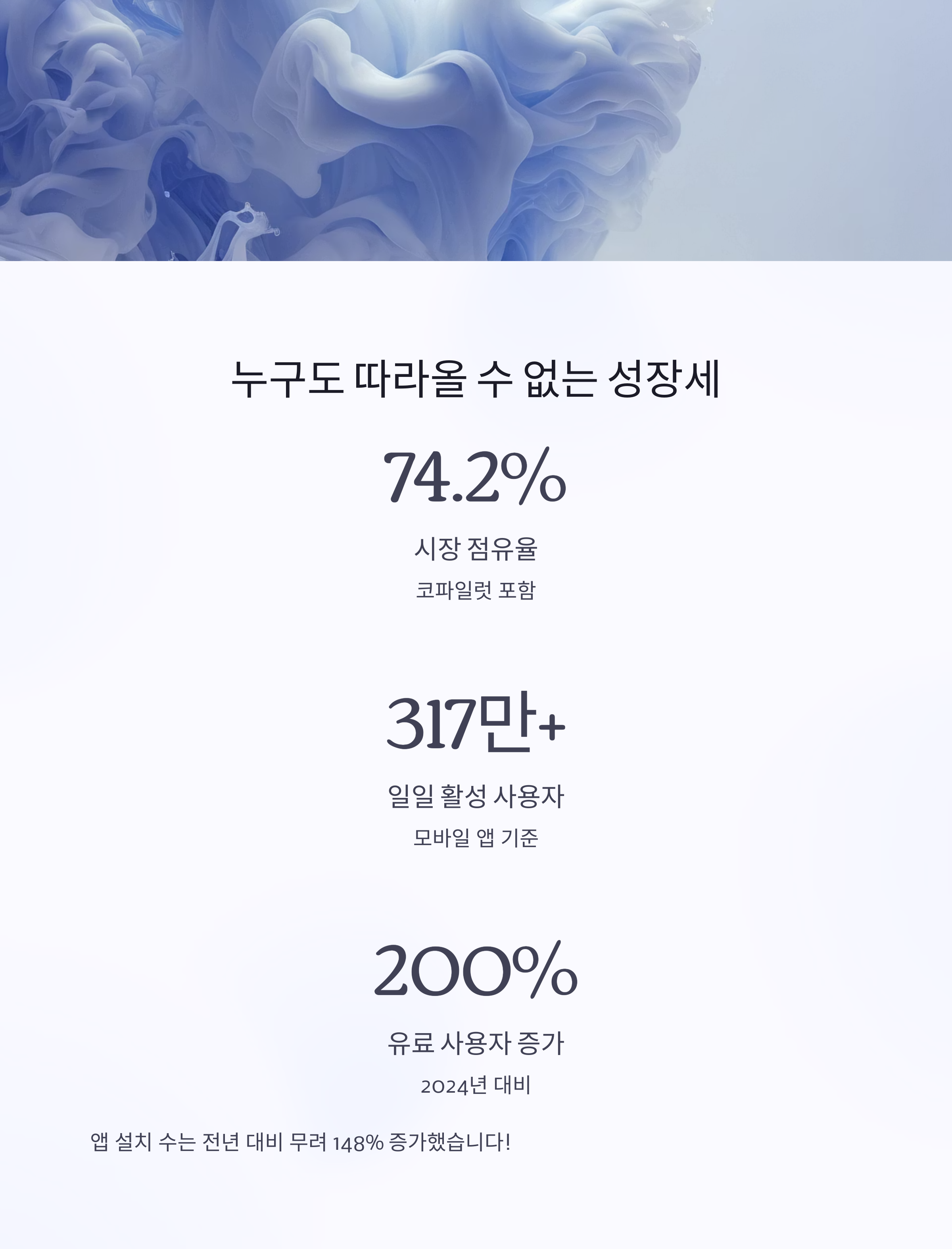 - 가장 빠른 성장률과 압도적 사용자 수