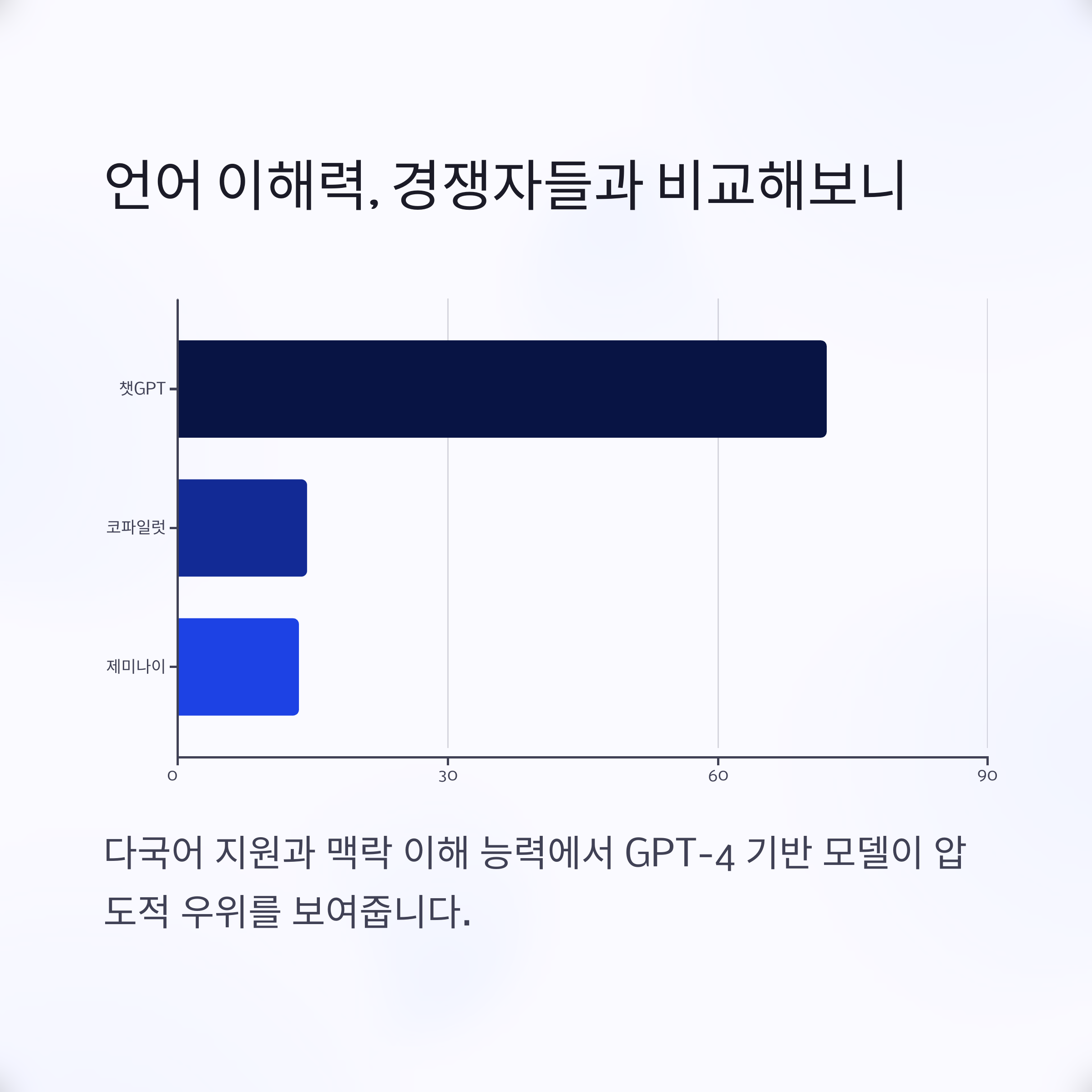 이와 비교해 챗GPT는 글로벌 언어 지원, 대화의 유연성, 최신 정보 검색 능력 등에서 여전히 AI 시장의 중심에 있습니다.