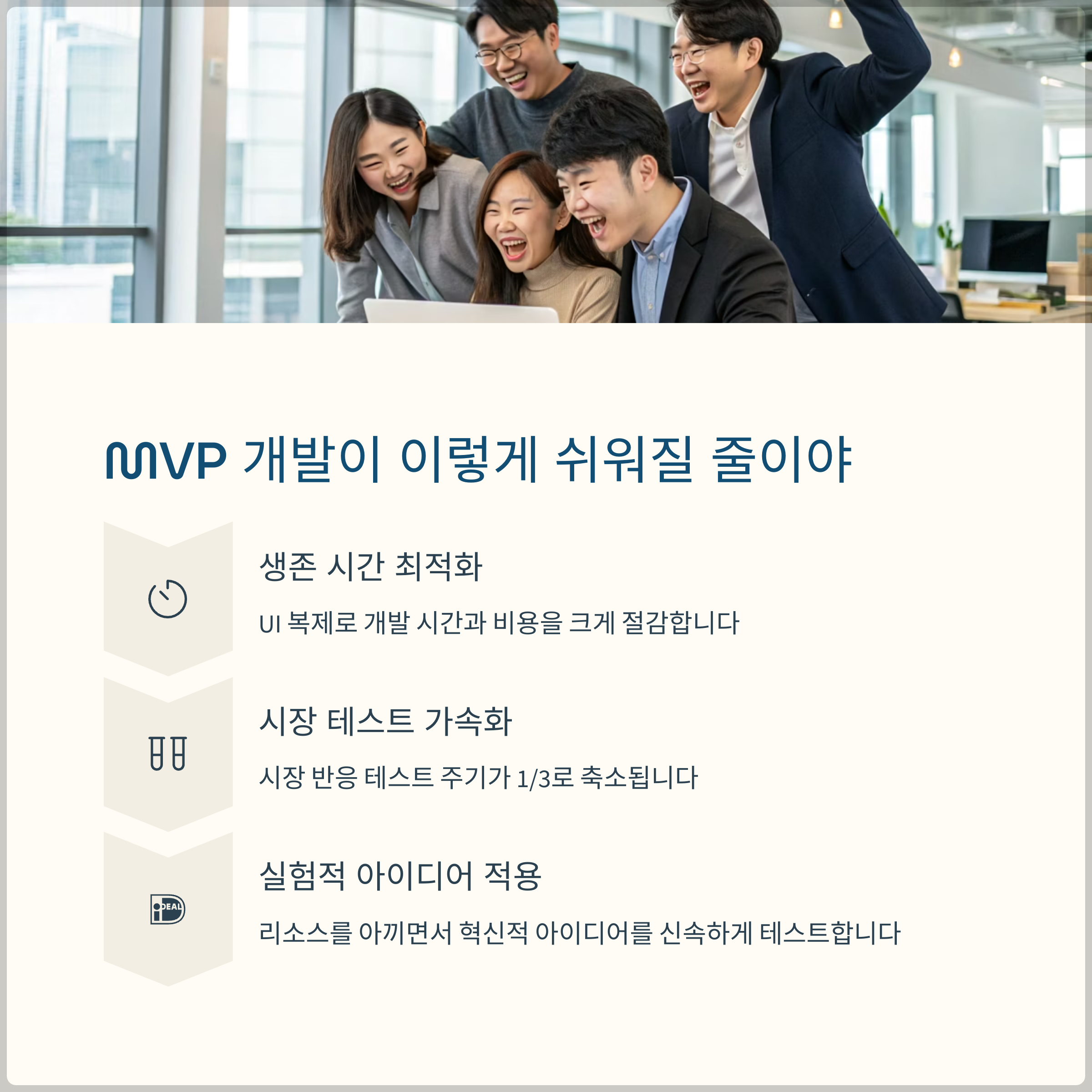 | 시장 검증 | 빠른 MVP 제작 및 배포로 초기 사용자 피드백 확보 용이 | 제품-시장 적합성 신속 확인 |