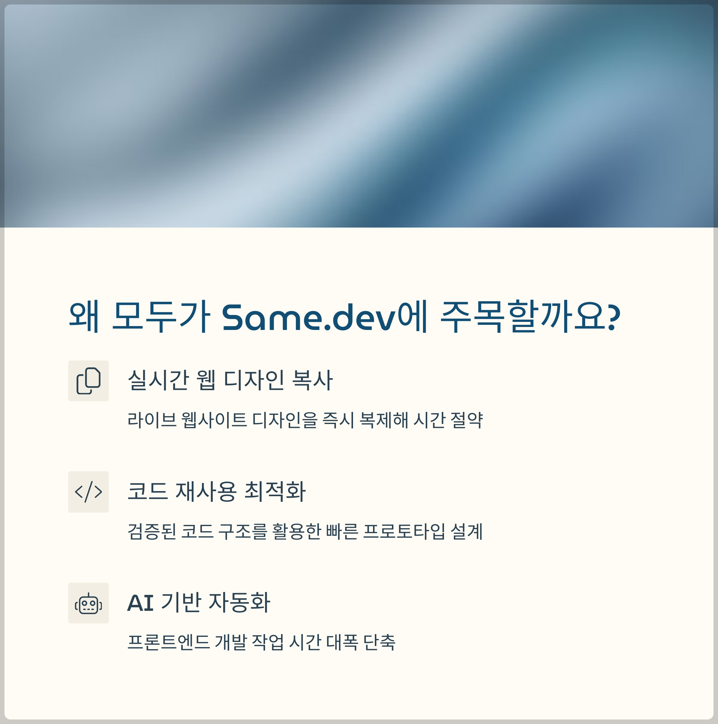 same.dev로 웹 UI 복제와 프로토타이핑이 쉬워졌다. AI 자동화, 프론트엔드, 디자인, 스타트업, MVP, 웹 개발 생산성까지!