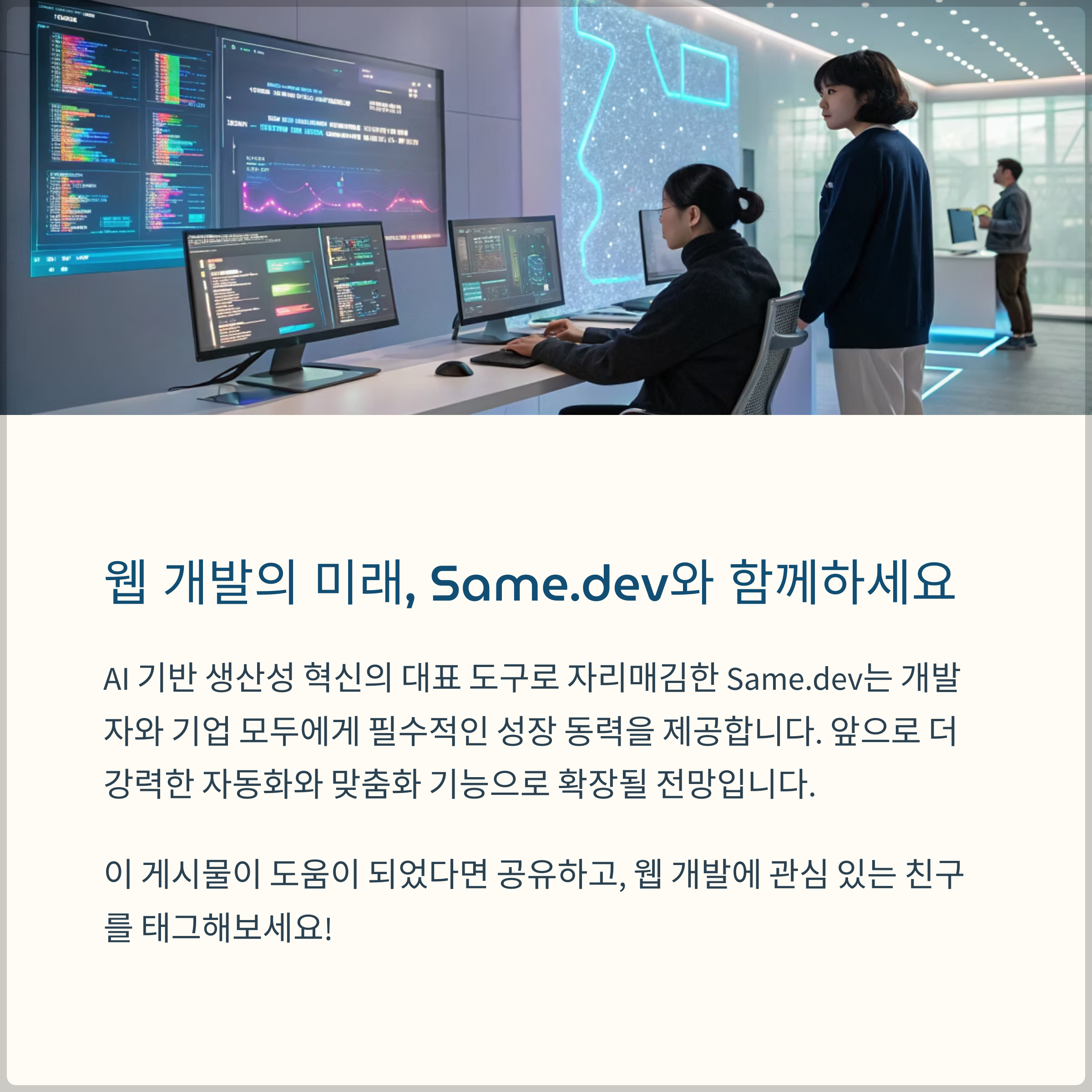 Same.dev와 같은 혁신적인 도구들은 웹 개발의 미래를 빠르게 앞당기고 있습니다. 여러분도 이러한 변화의 흐름에 동참하여 더욱 효율적이고 창의적인 개발 경험을 만들어나가시길 바랍니다.