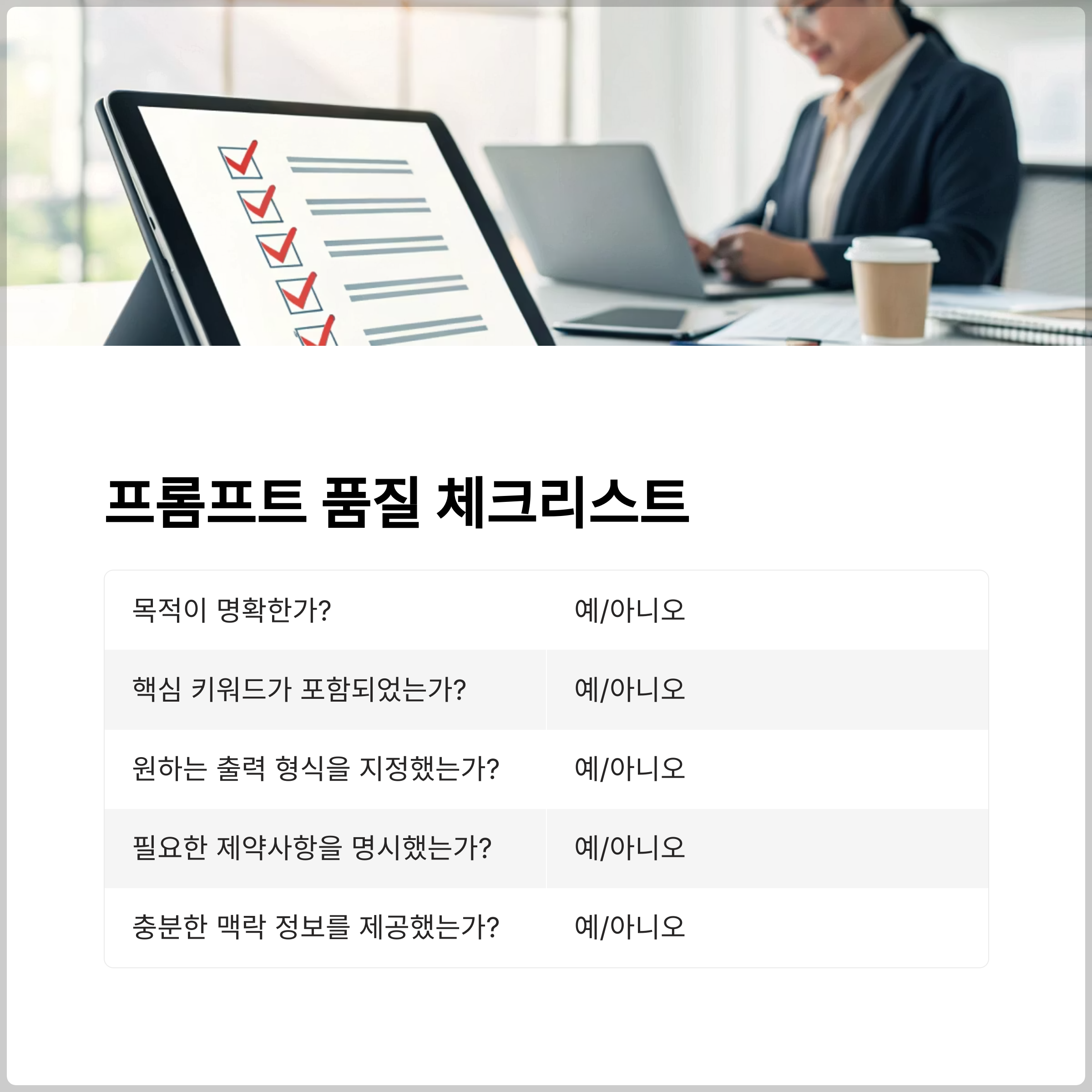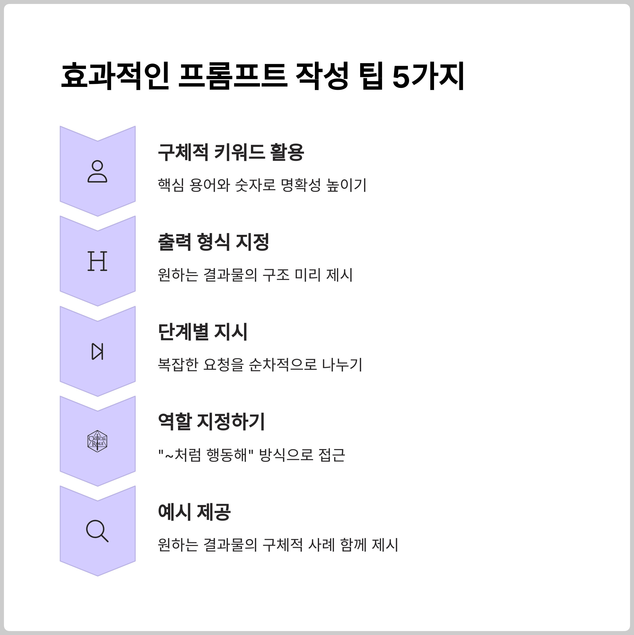 단순한 질문이 아니라, 원하는 정보, 톤, 스타일 등을 구체적으로 전달하는 것이 핵심입니다.