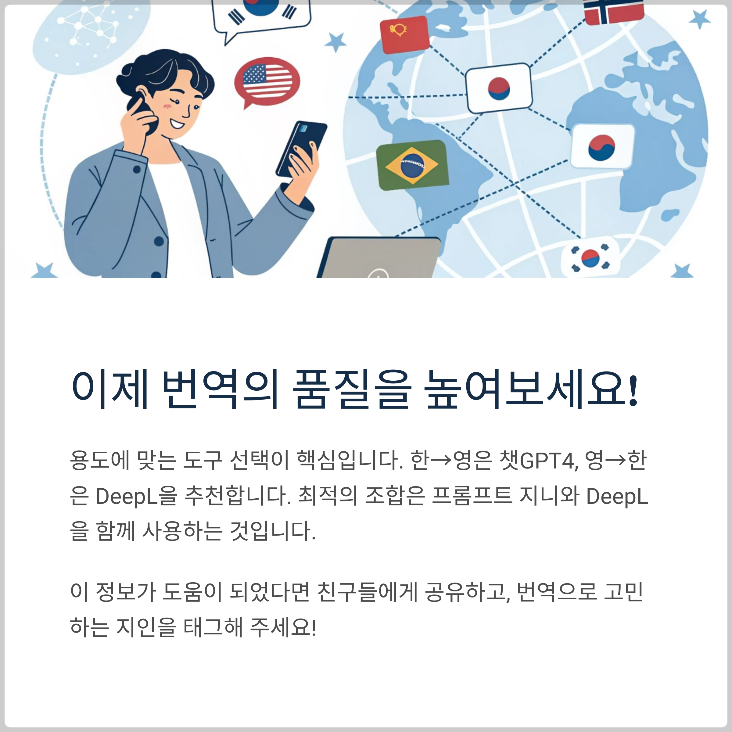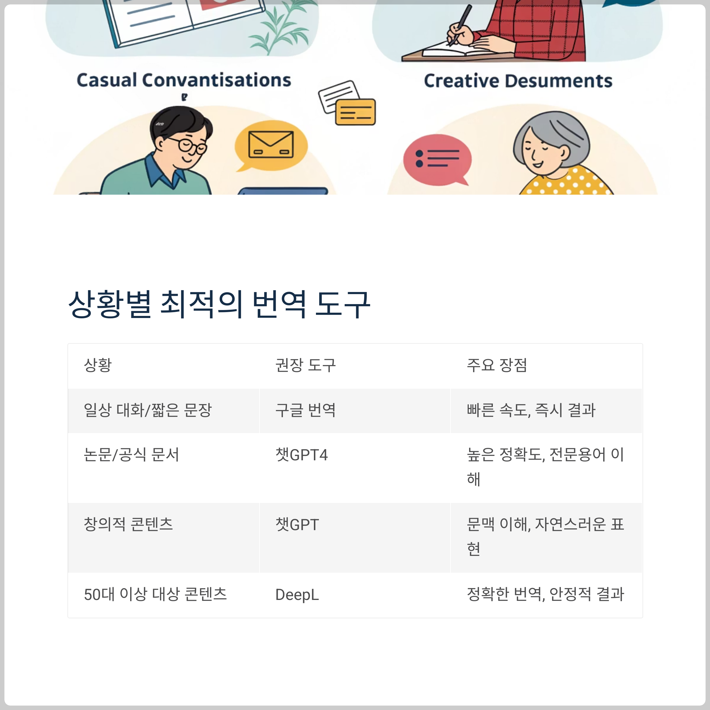 다만, 언어 다양성이나 실시간 번역이 필요할 때는 구글 번역도 병행해 활용하는 것이 현명합니다.