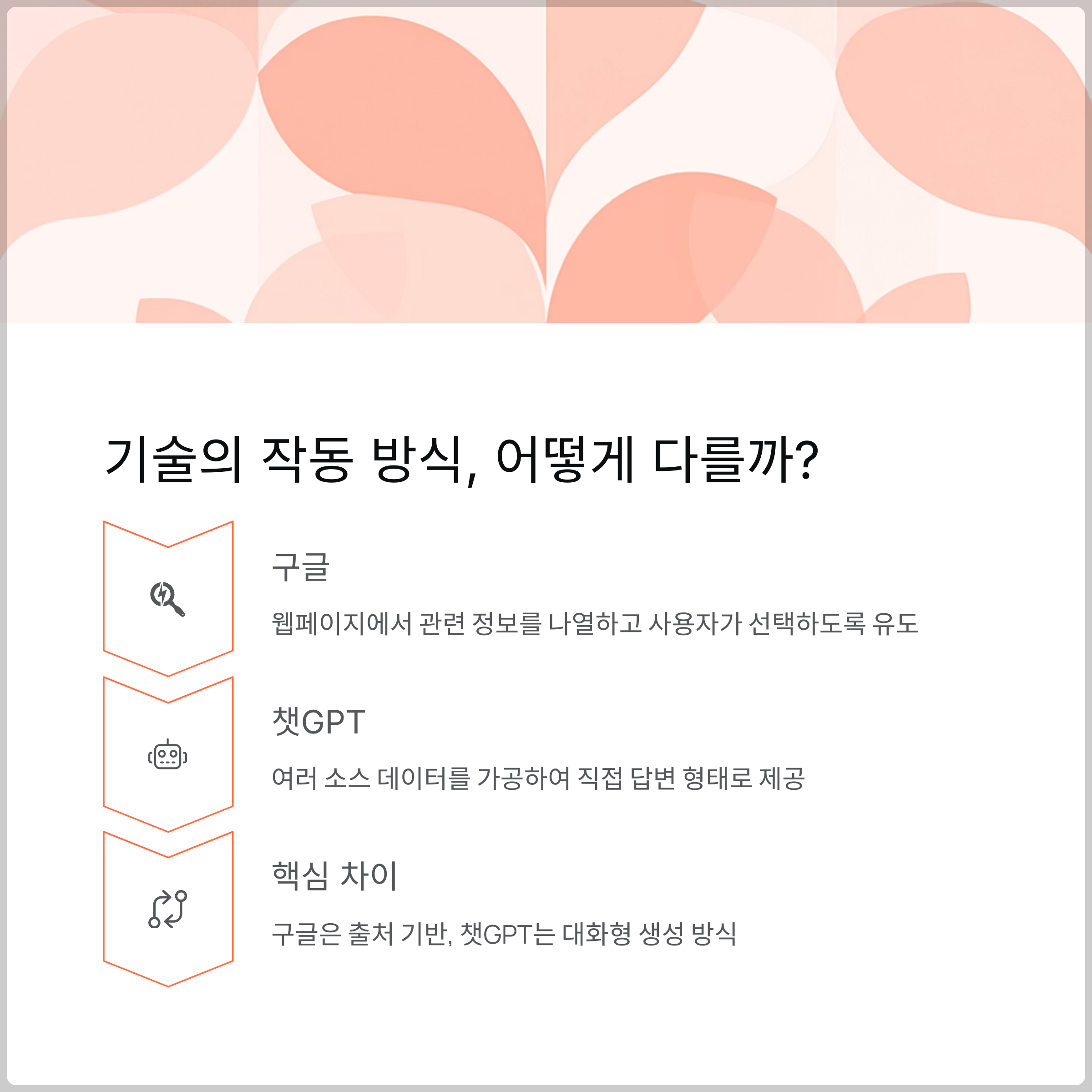 챗GPT와 구글 검색은 정보를 처리하는 방식부터 근본적으로 다릅니다.