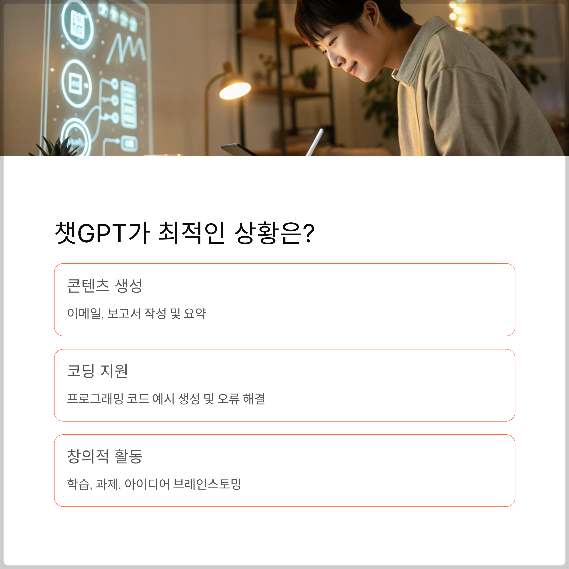 챗GPT는 다음과 같은 경우에 강력한 도구가 됩니다.