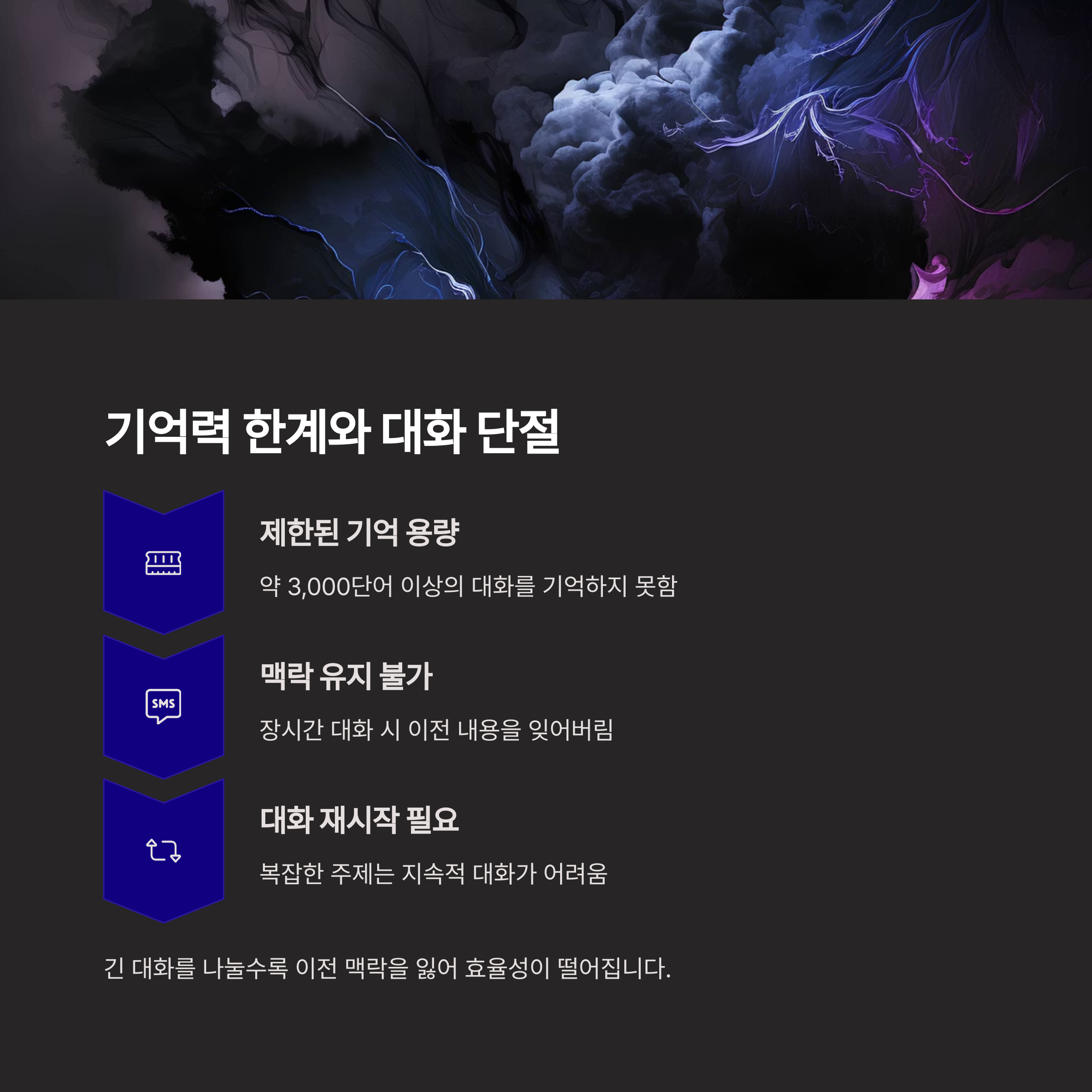 | 맥락 단절 | 장시간 대화 시 일관성 부족 및 정보 누락 발생 |