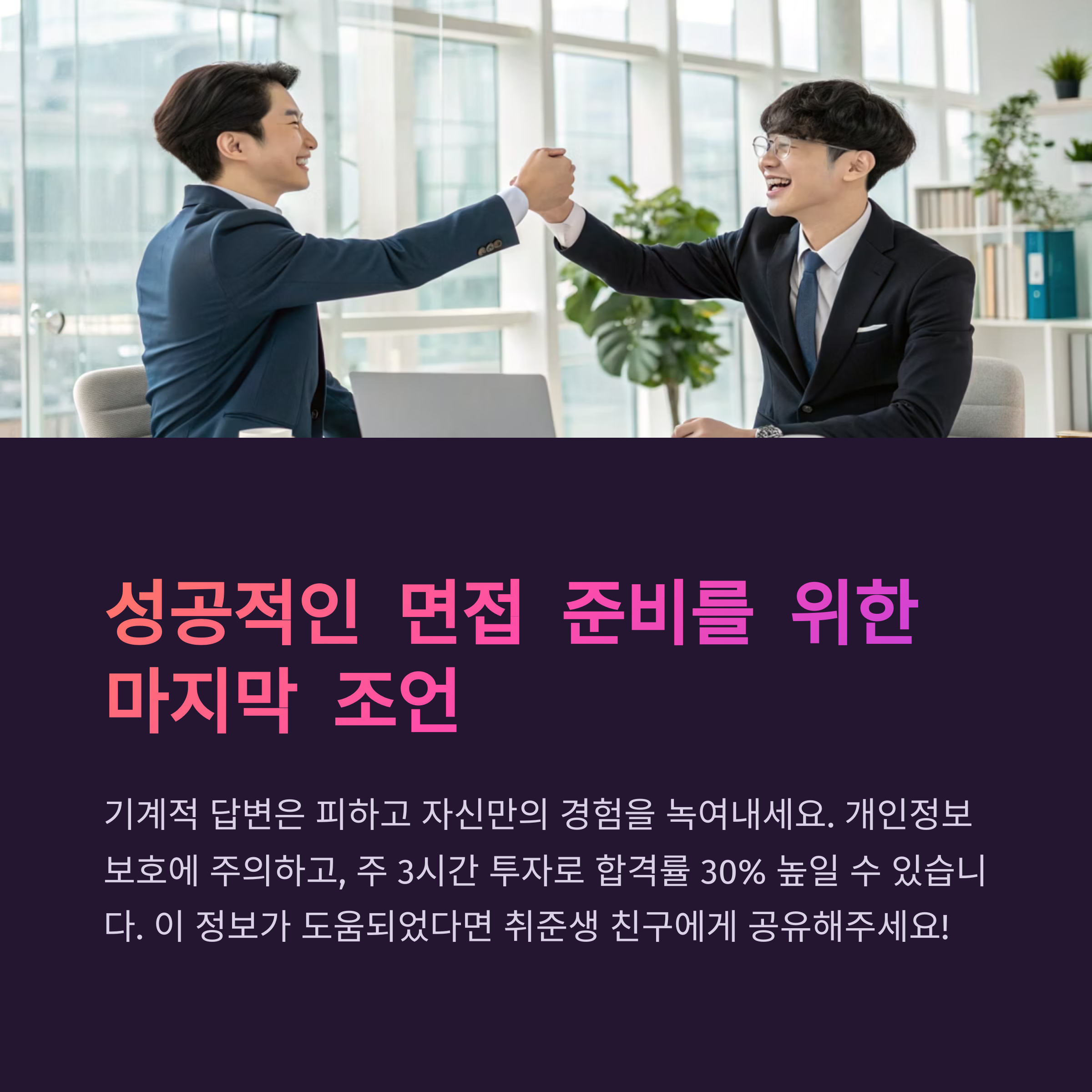 챗GPT의 분석 결과를 참고하여 면접 답변을 반복적으로 다듬는다면, 훨씬 더 설득력 있는 커뮤니케이션을 준비할 수 있습니다.
