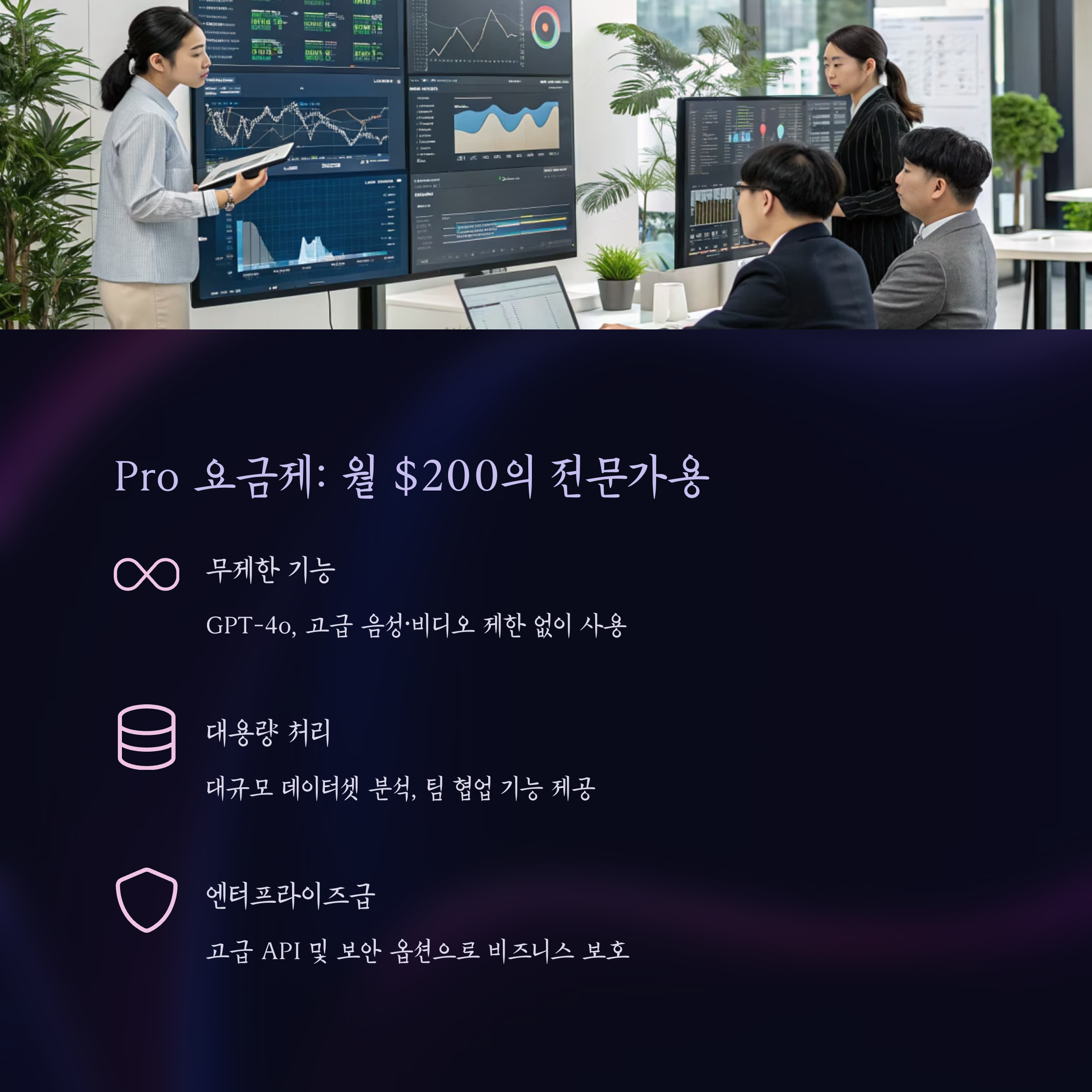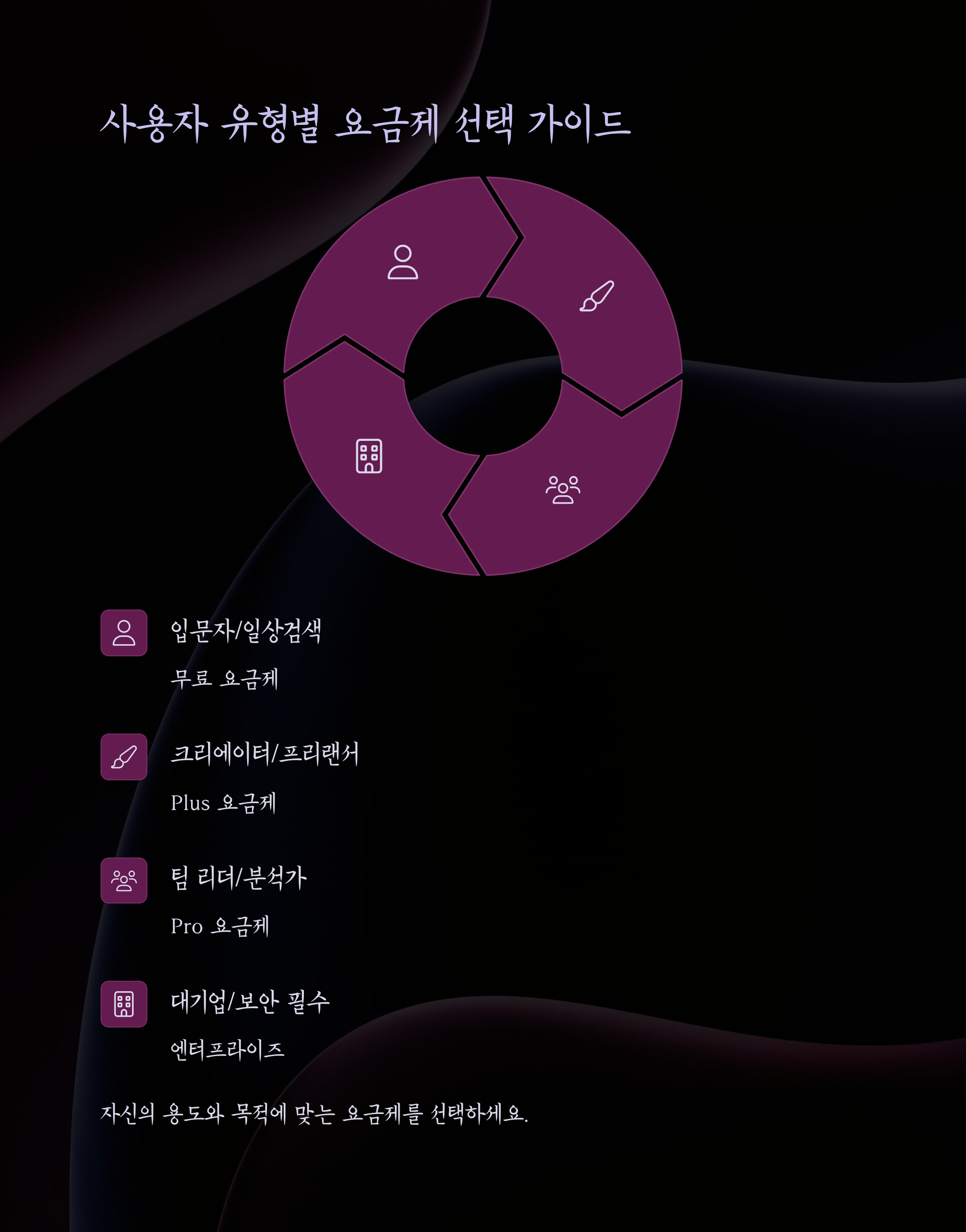 Team과 Enterprise는 협업 및 확장 기능이 필요한 고급 사용자와 기업을 위한 플랜입니다.