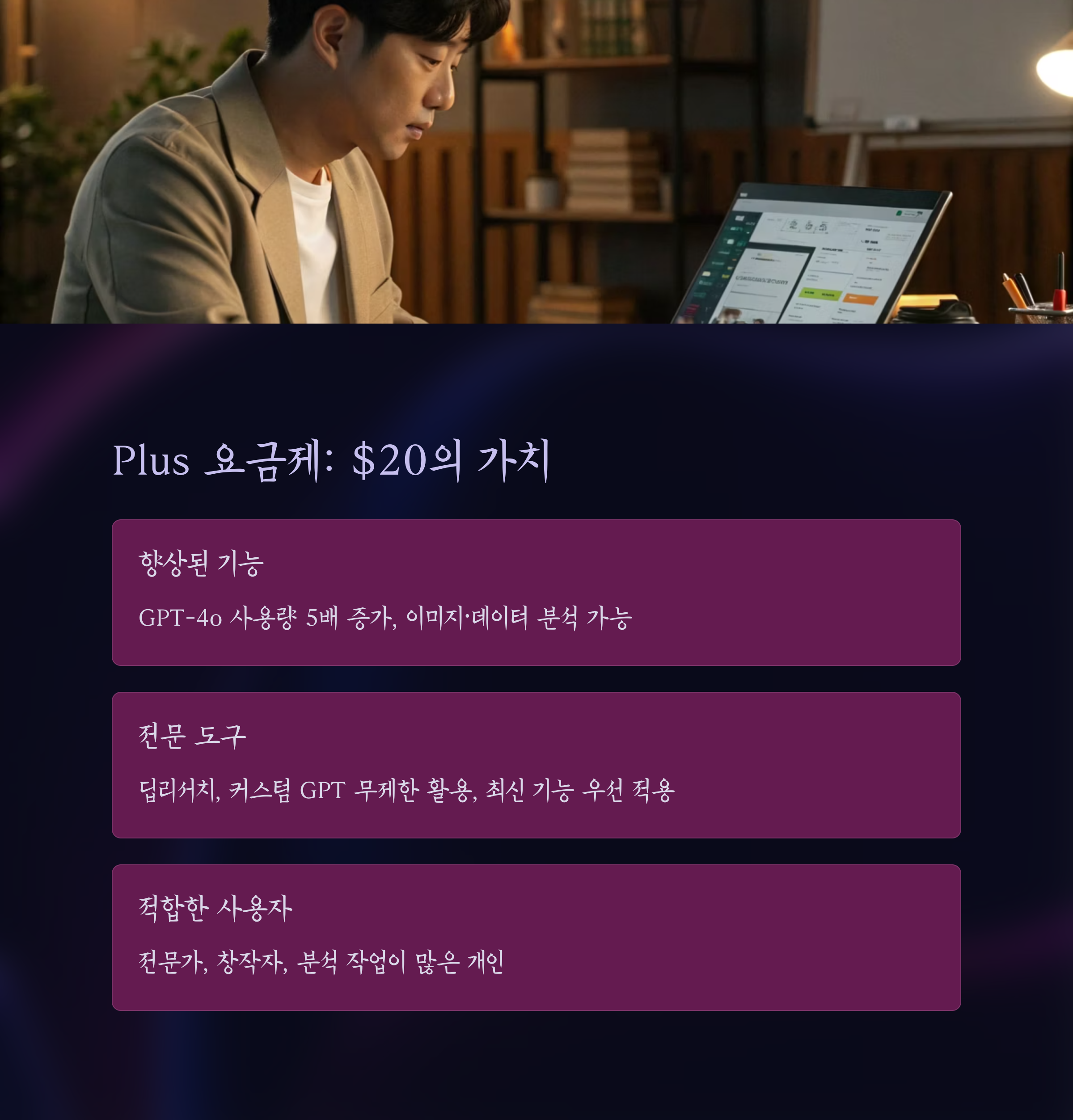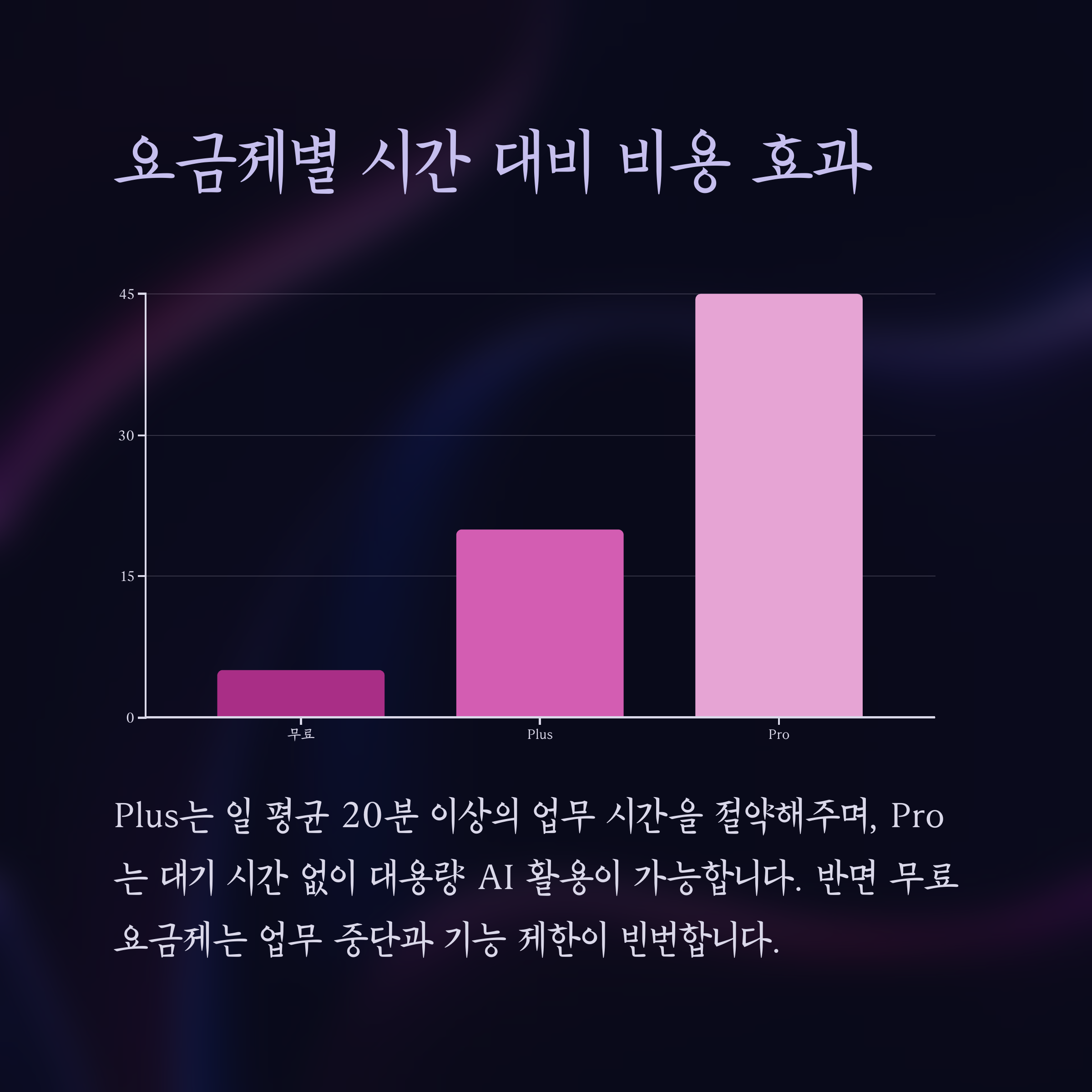 - Plus 요금제: 월 $20 / 평균 5~10시간 절약 → 시간당 $2~4