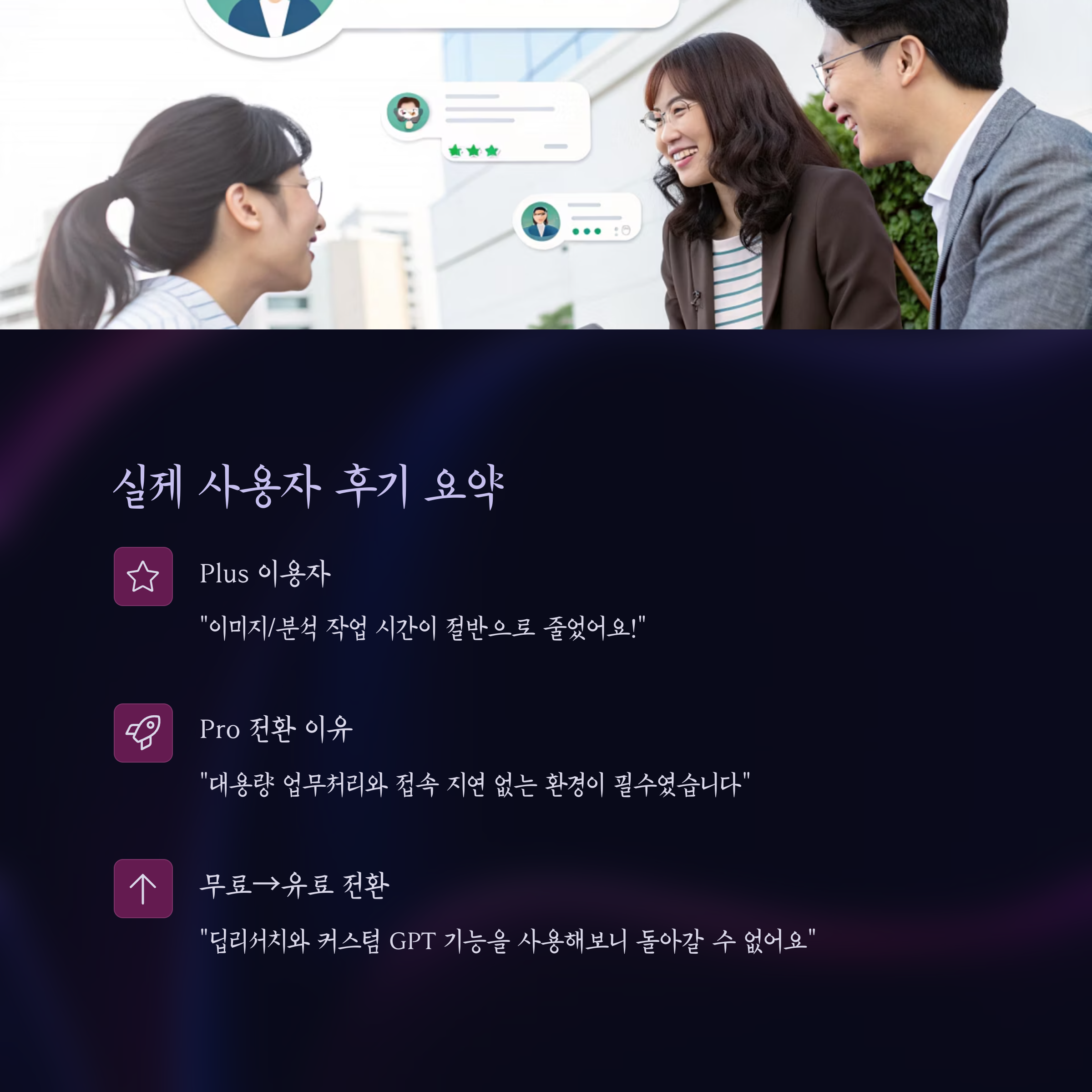 | 사용자 유형 | 전환 계기 | 만족 포인트 |