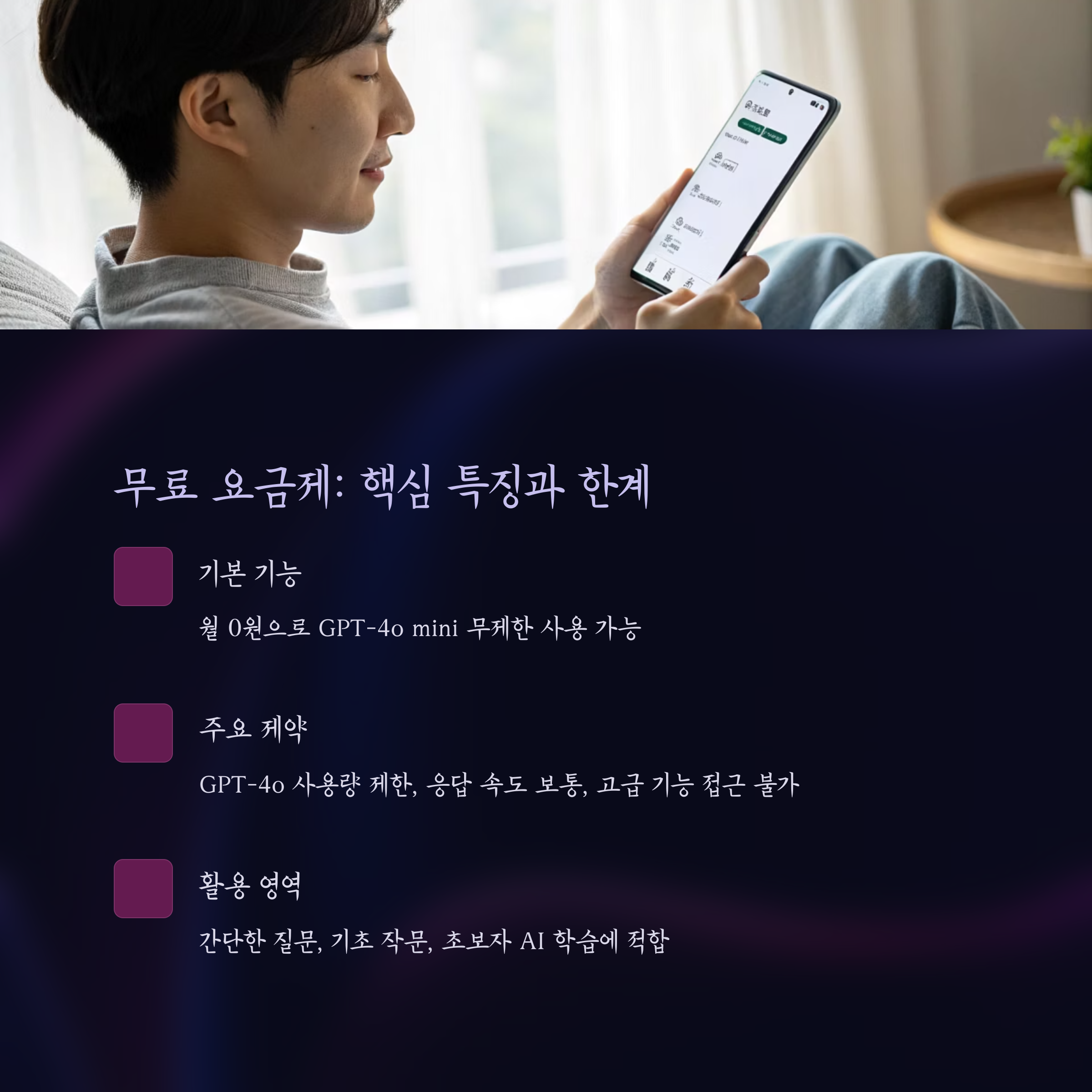 | 제공 모델 | GPT-3.5 / GPT-4o mini, 간헐적 GPT-4o |