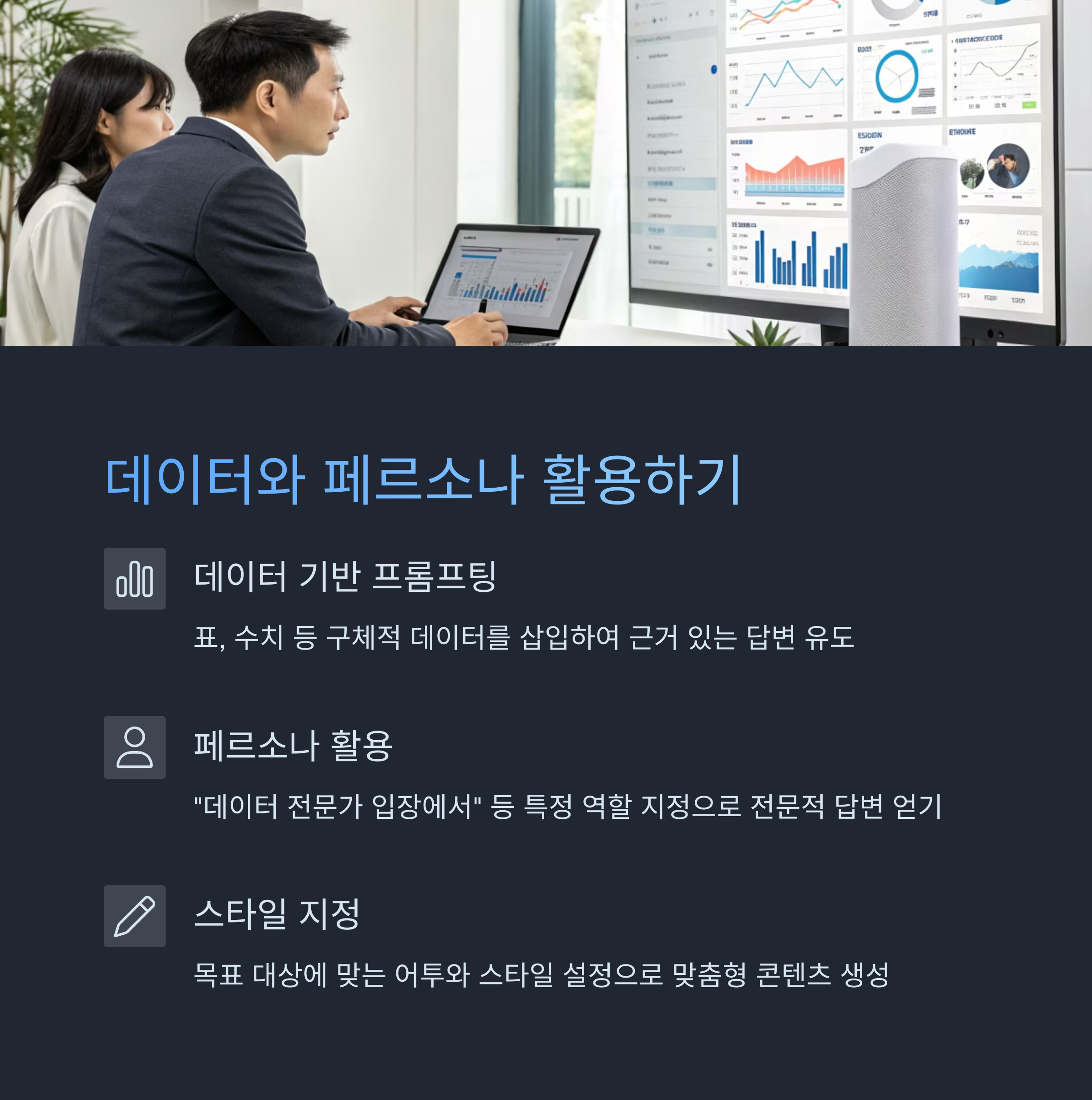 이제 더 나아가 AI가 특정 정보를 기반으로 답변하고, 특정 역할(페르소나)을 맡아 답변을 생성하도록 하는 고급 질문법을 알아봅니다.