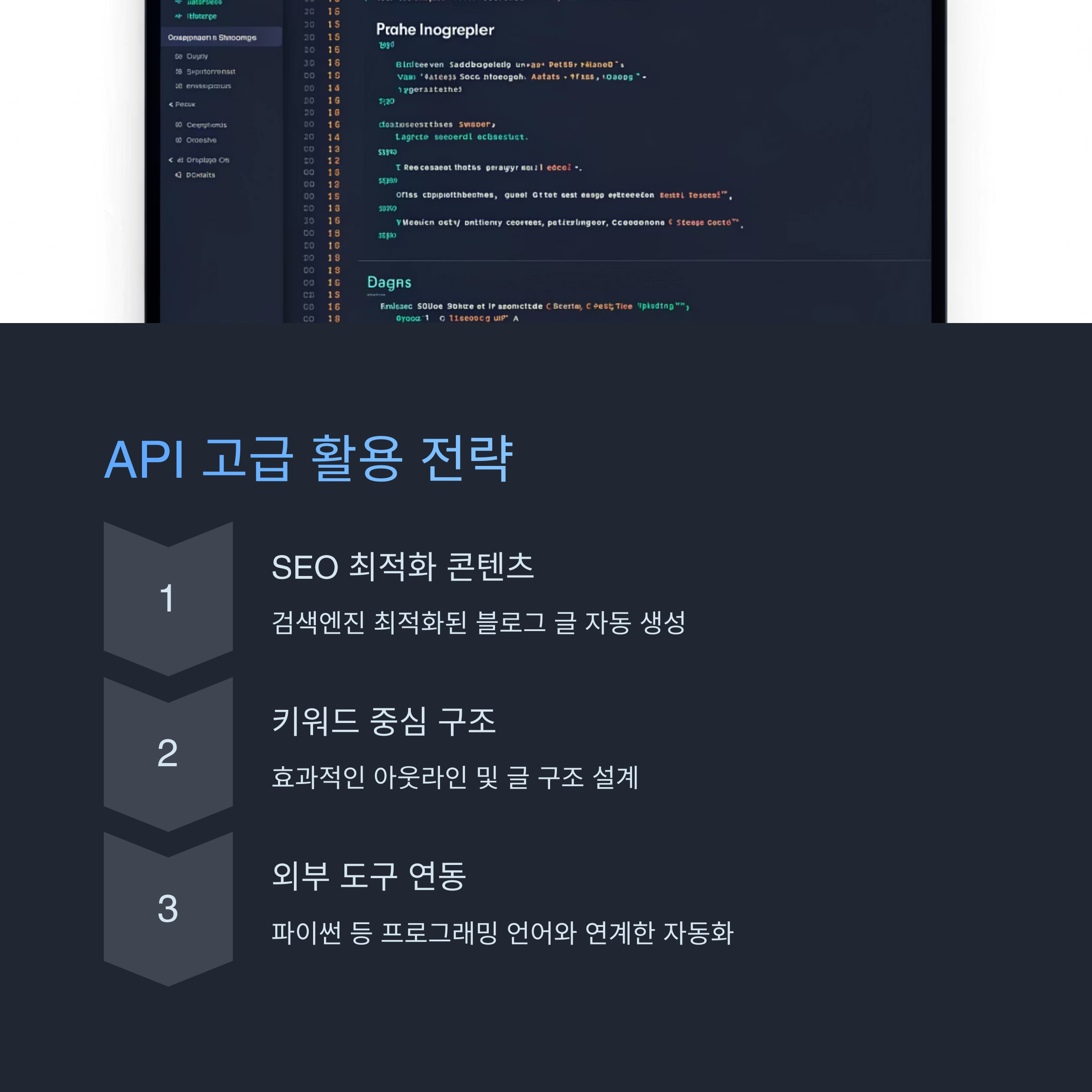 챗GPT API를 활용하면 더욱 정교한 질문법을 구현하고 자동화된 콘텐츠 생성이 가능해집니다. 특히 SEO 최적화 블로그 글을 자동 생성할 때 매우 유용하며, 키워드 중심의 글 구조를 빠르게 설계하고 제목, 소제목, 핵심 문장을 효율적으로 추출할 수 있습니다. API를 통해 특정 조건에 맞는 콘텐츠를 대량으로 생성하거나, 특정 워크플로우에 챗GPT를 통합하여 생산성을 극대화할 수 있습니다.
