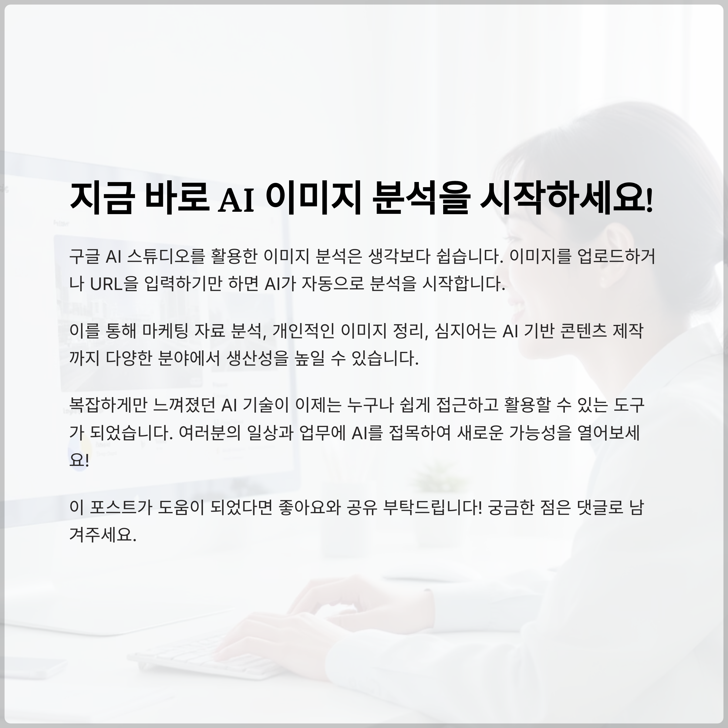 이미지 한 장으로 가능한 AI 혁신, 지금 시작하세요! 복잡해 보이는 이미지 분석, 구글 AI 스튜디오만 있다면 초보자도 전문가처럼 할 수 있습니다.