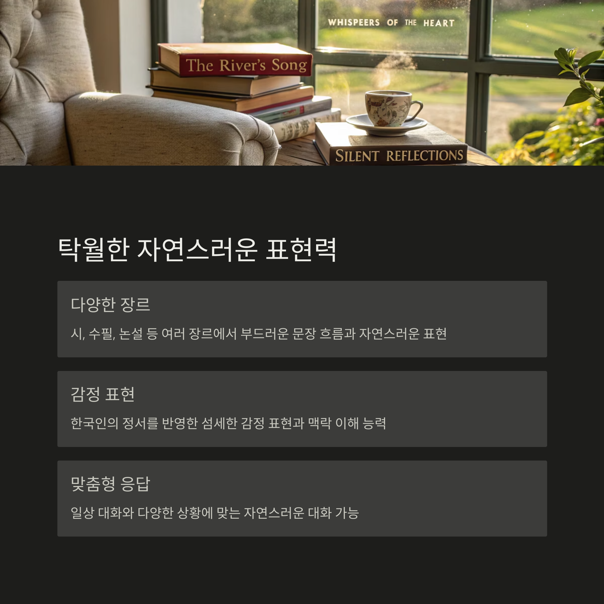 | 한국어 표현력 | 제한적 | 맥락 이해 뛰어남 |