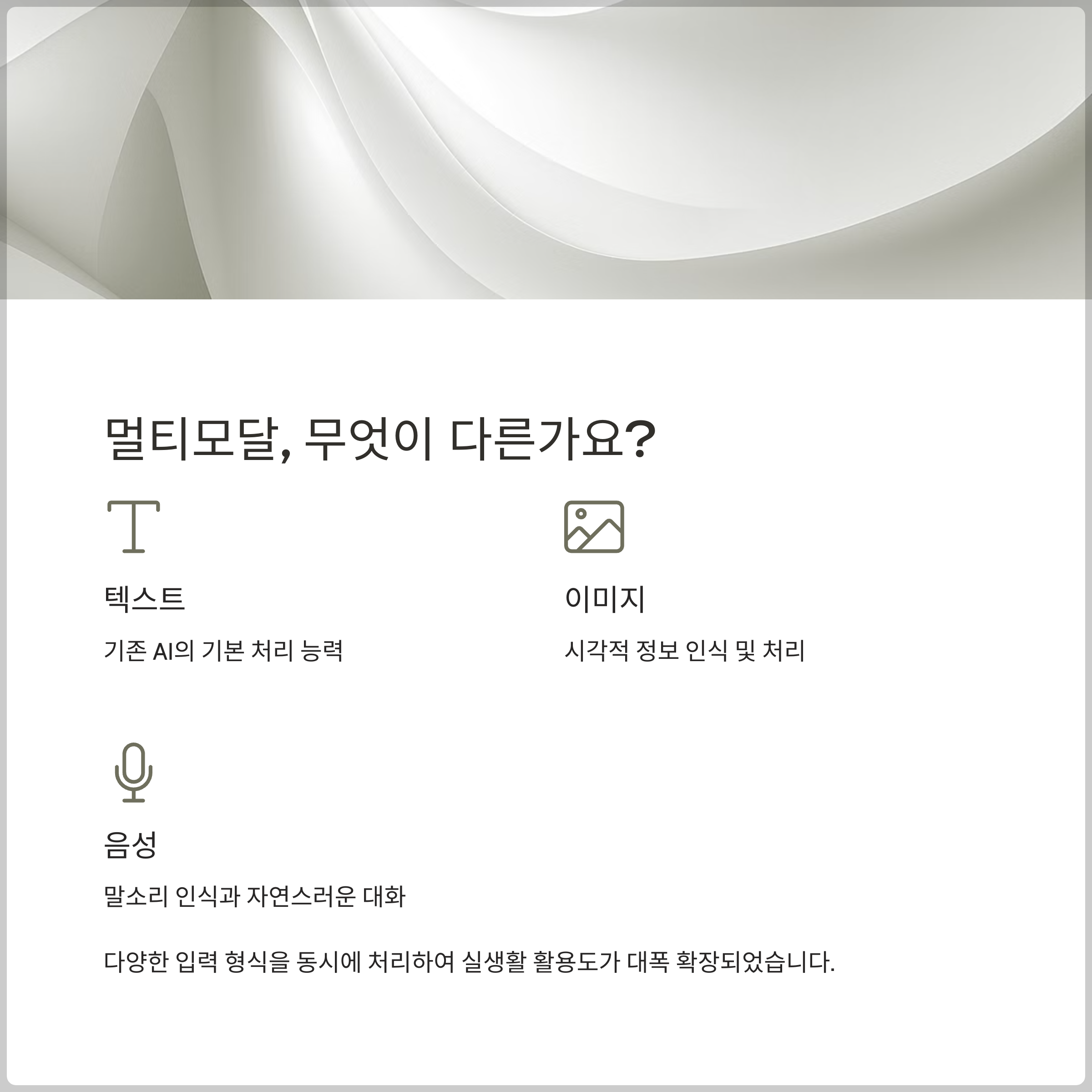 하이퍼클로바X는 단순히 텍스트 생성에만 그치지 않고, 이미지와 음성을 동시에 인식할 수 있는 멀티모달 AI로 확장되었습니다. 이 기능은 다양한 매체에서 얻은 시각 정보를 바탕으로 글을 더 풍부하게 구성할 수 있도록 돕습니다.
