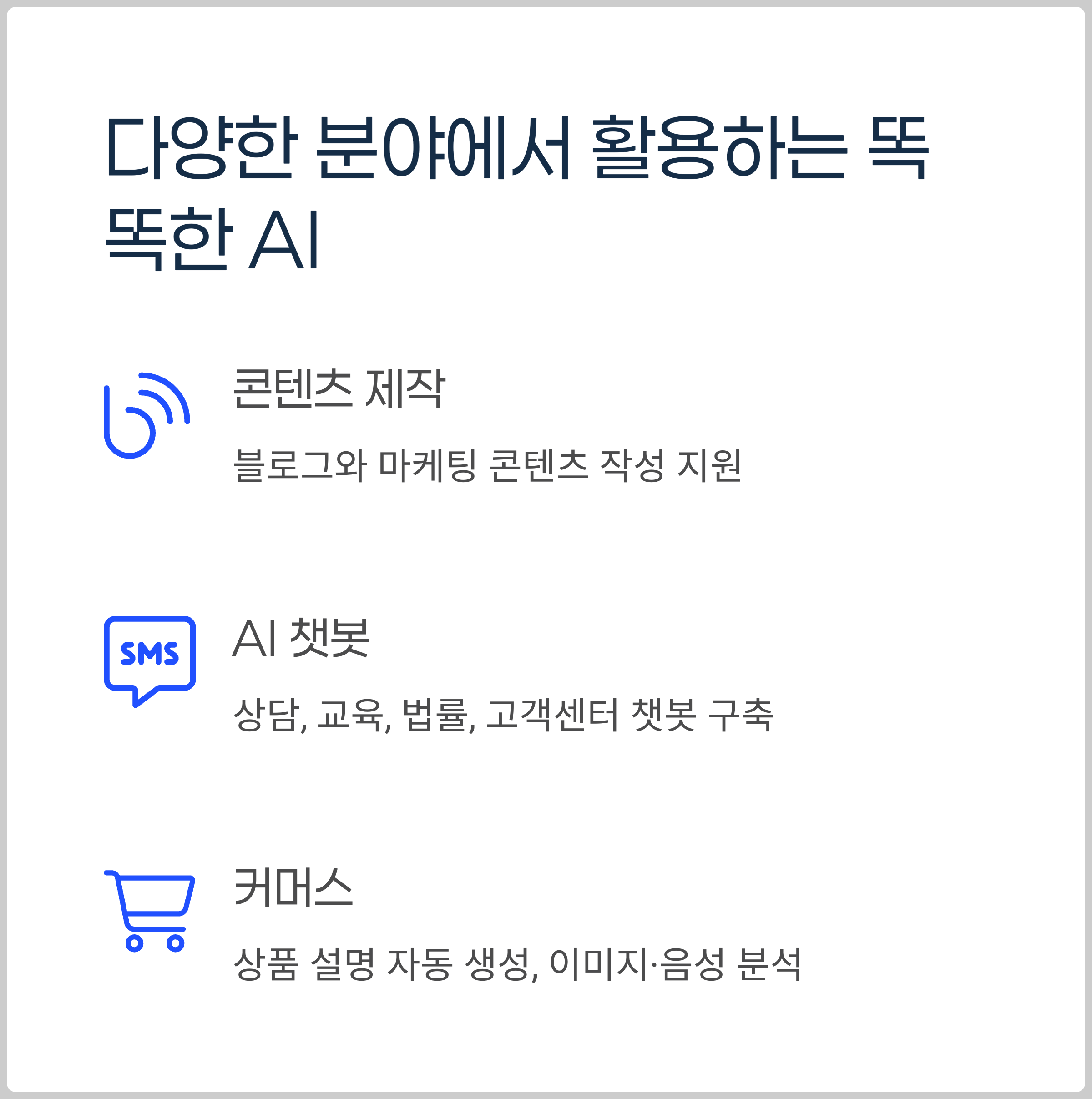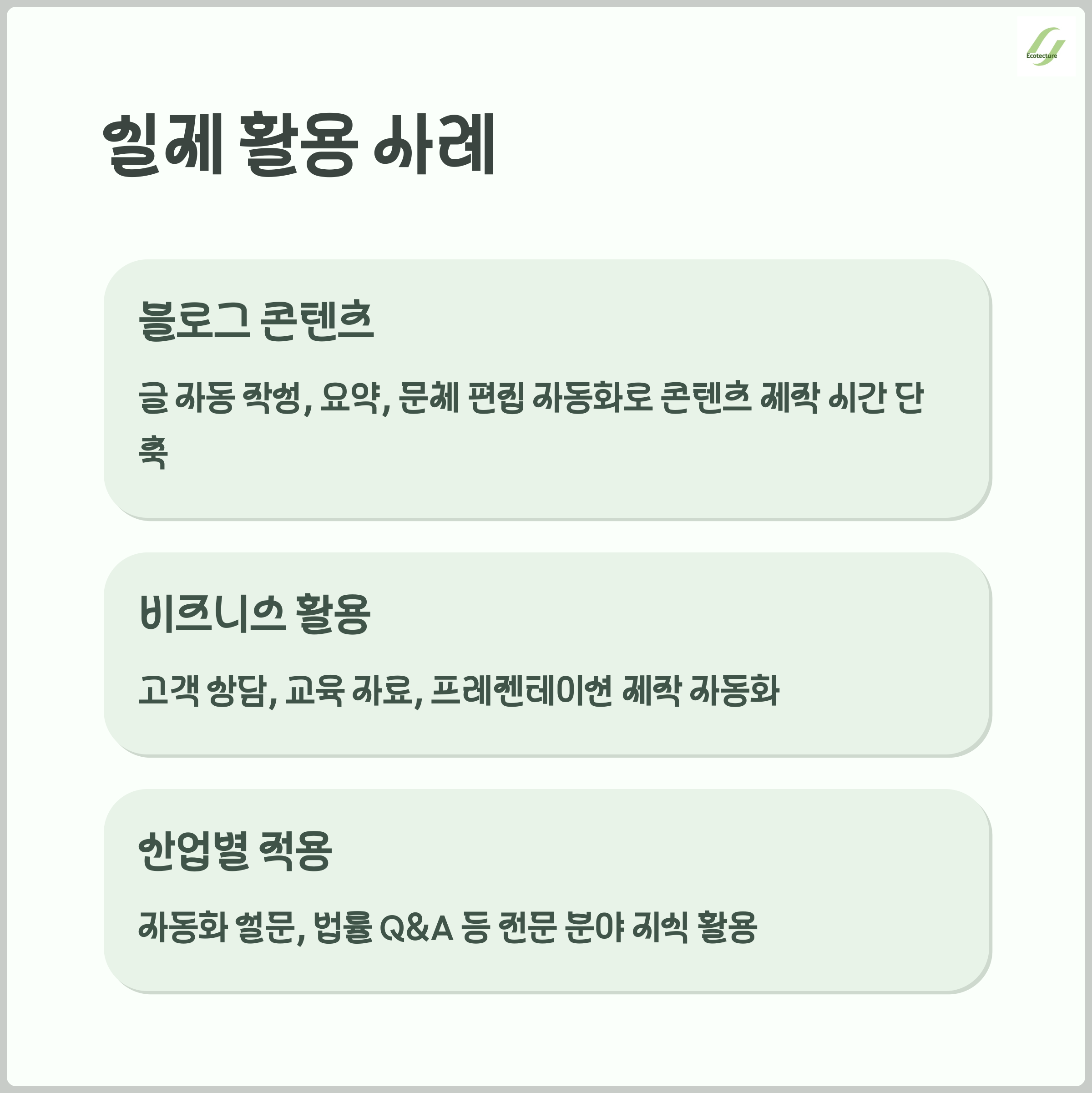 블로그 글쓰기, 고객 상담, 교육 콘텐츠 제작, 마케팅 등 다양한 분야에서 활용되고 있습니다.