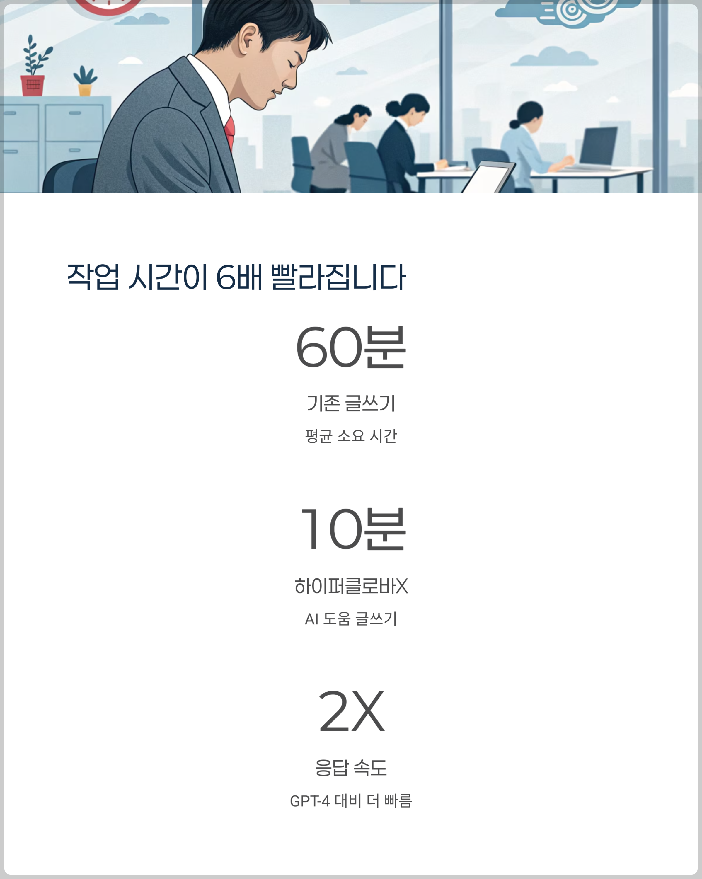 | 작업 항목 | 기존 방식 소요 시간 | 하이퍼클로바X 사용 시 |