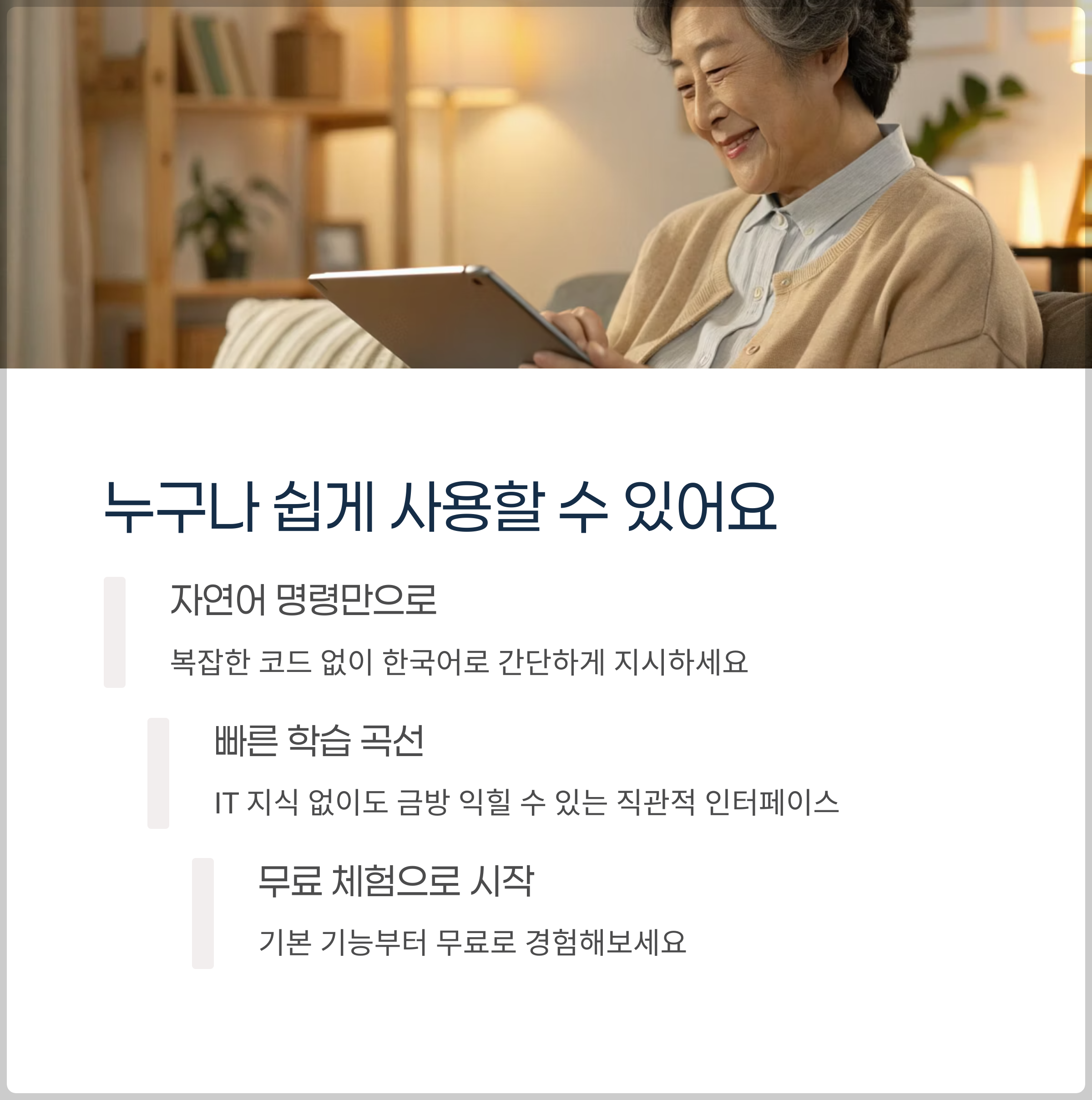 네, 사용법이 간단하며 자연어 명령만으로도 쉽게 결과를 얻을 수 있어 초보자도 바로 활용할 수 있습니다.