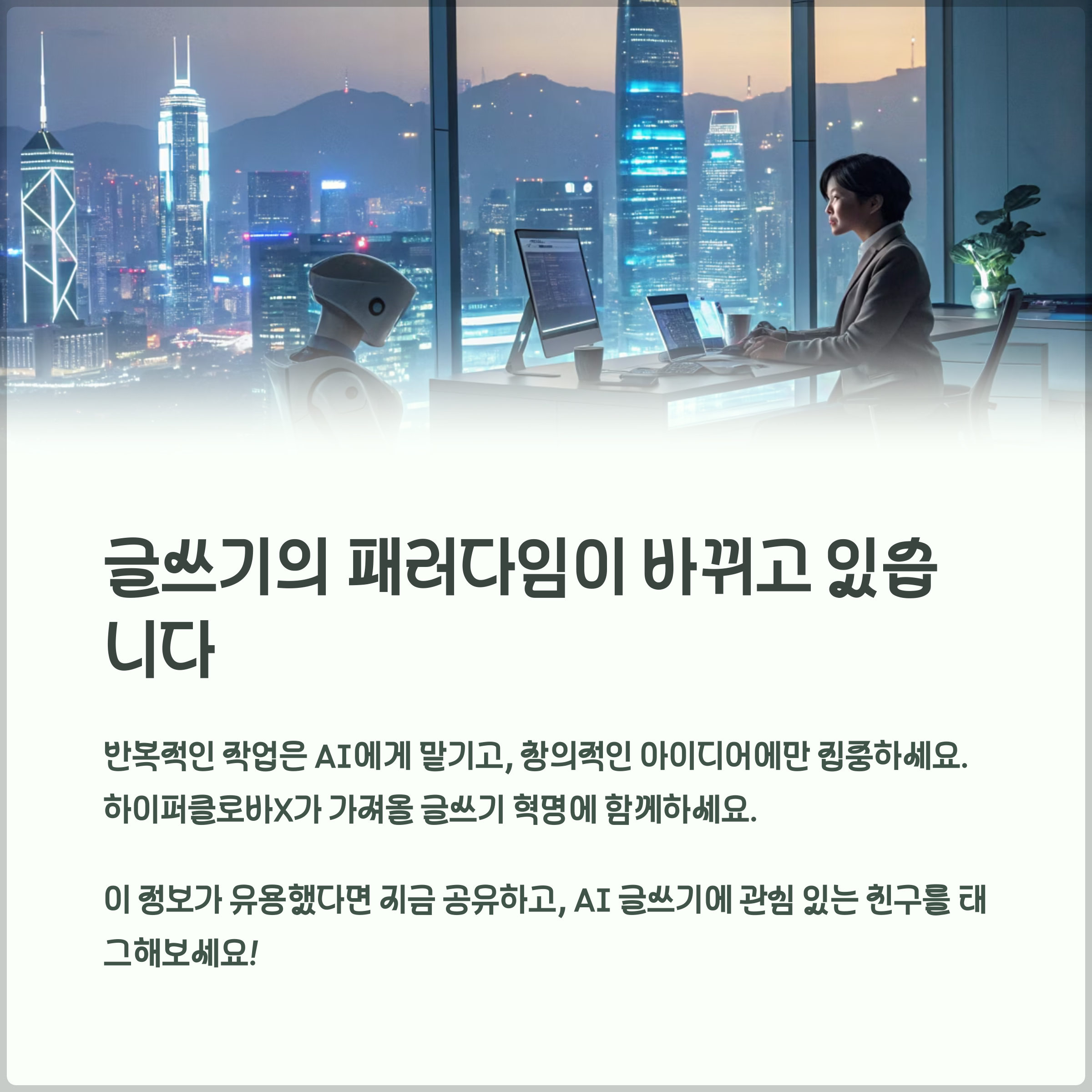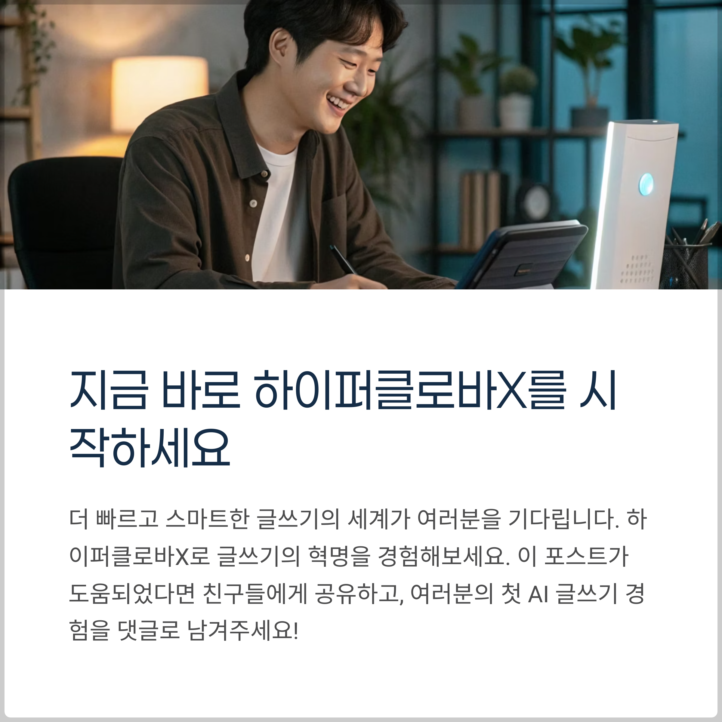 하이퍼클로바X는 단순한 AI 도구를 넘어, 블로그 글쓰기의 새로운 시대를 여는 핵심 기술로 자리 잡고 있습니다. 초보자든 전문가든 누구나 효율적인 콘텐츠 작성을 경험할 수 있으며, 실제로 글쓰기 시간이 5분의 1 이하로 줄어드는 것을 체감할 수 있습니다. 지금 바로 하이퍼클로바X를 활용해보세요. 글쓰기의 패러다임이 완전히 바뀌는 순간을 경험하게 될 것입니다! 여러분의 사용 후기도 댓글로 남겨주세요!