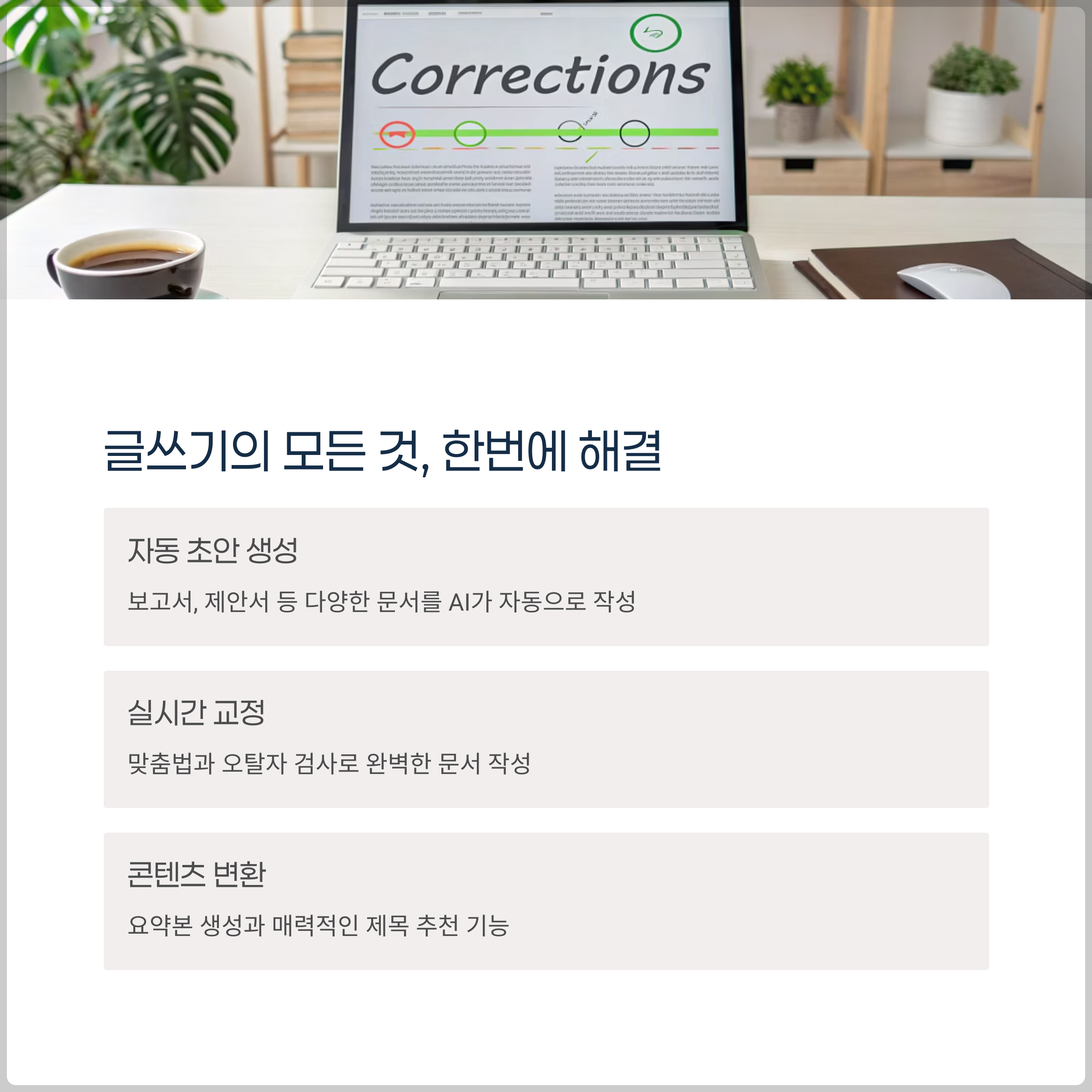 - 맞춤법/오탈자 검사: 자동 교정으로 퀄리티 향상