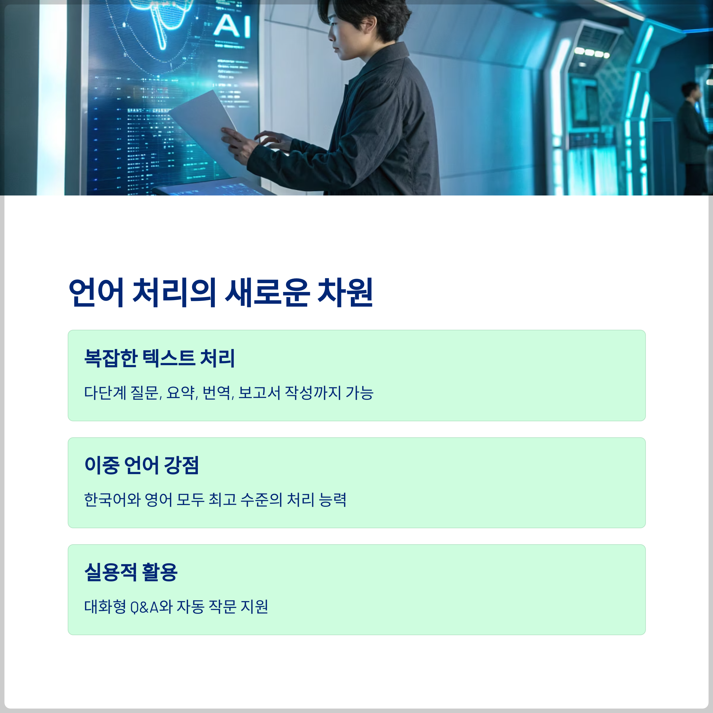 | 텍스트 처리 | 자연어 이해, 요약, 번역, 코드 생성 등 텍스트 작업 수행 |