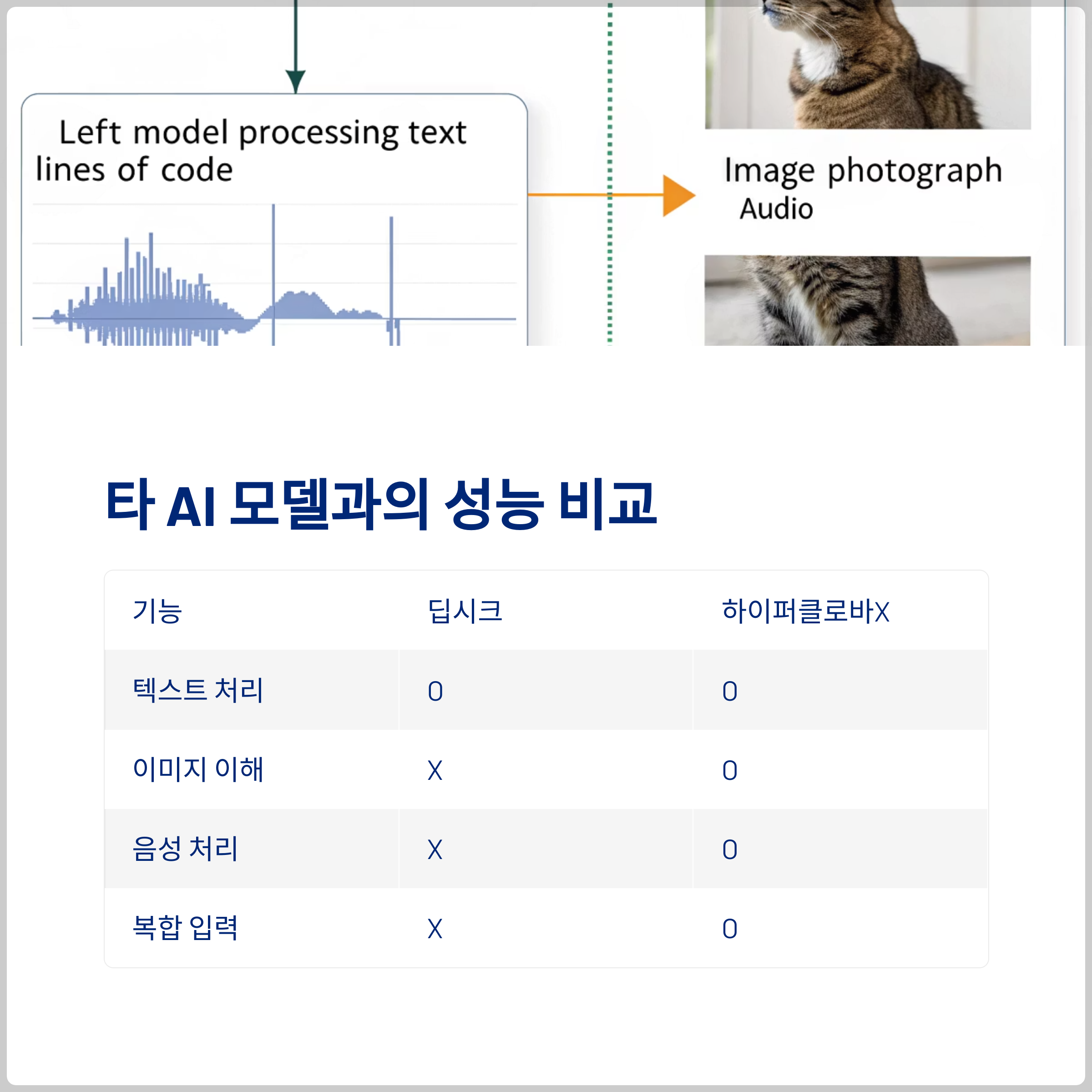 2024년 5월 기준으로, 멀티모달 AI 경쟁은 오픈AI의 GPT-4o와 네이버의 하이퍼클로바X가 주도하고 있습니다. 아래 표는 두 모델의 대표 기능 및 성능 비교입니다.