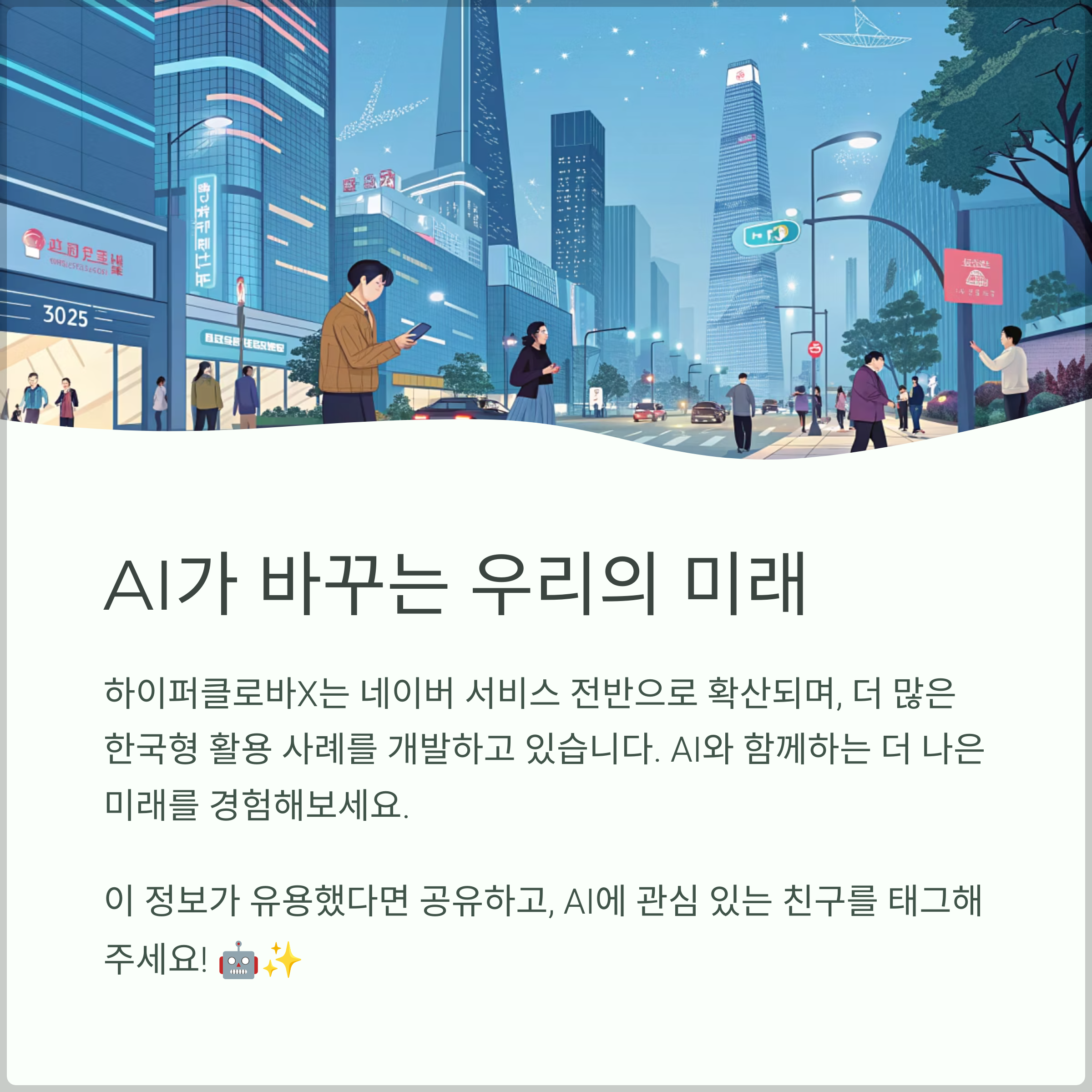 네이버는 지속적인 성능 개선과 함께, B2B SaaS 솔루션과 창작 지원 서비스 등으로 활용 영역을 넓혀갈 계획입니다. 특히 다국어, 감정 기반 상호작용 기술 강화가 중점입니다.