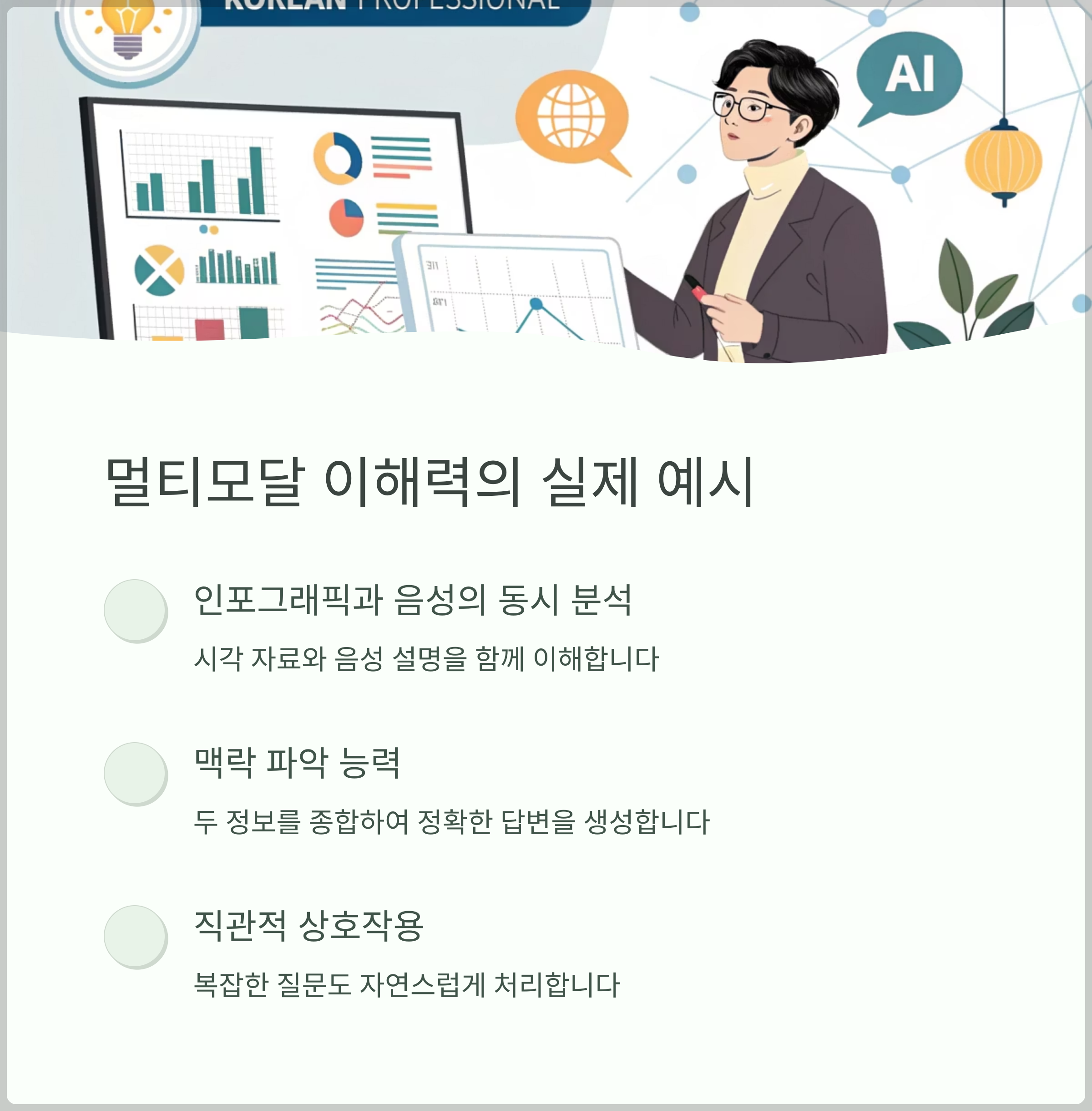 하이퍼클로바X는 단순한 텍스트 생성에 그치지 않고, 이미지 분석과 음성 이해를 병행함으로써 ‘상황 전체’를 맥락적으로 해석하는 데 탁월한 능력을 보입니다.