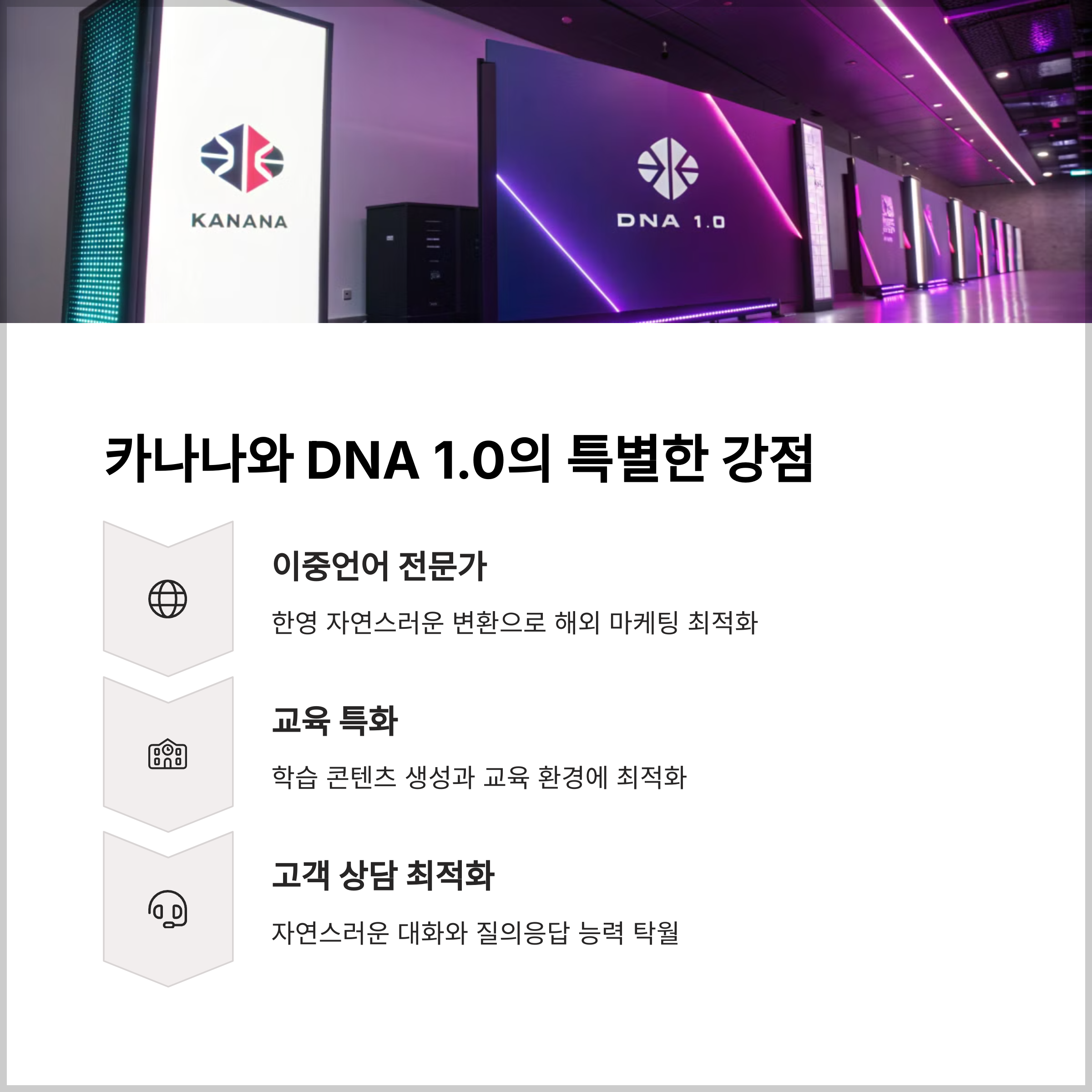 - 한국어+영어 작업 → 카나나, DNA 1.0