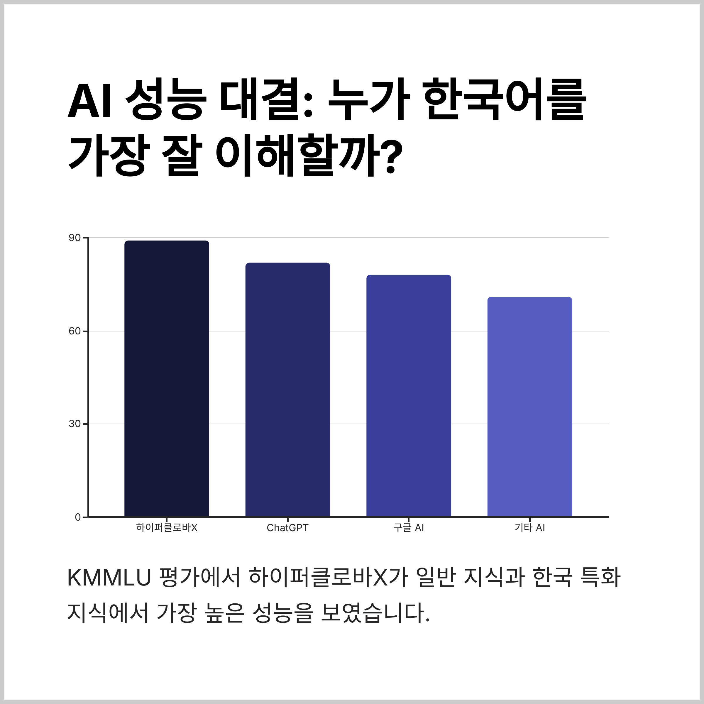 2025년 기준으로 하이퍼클로바X가 한국어 처리 능력에서는 최고 수준으로 평가받고 있습니다.