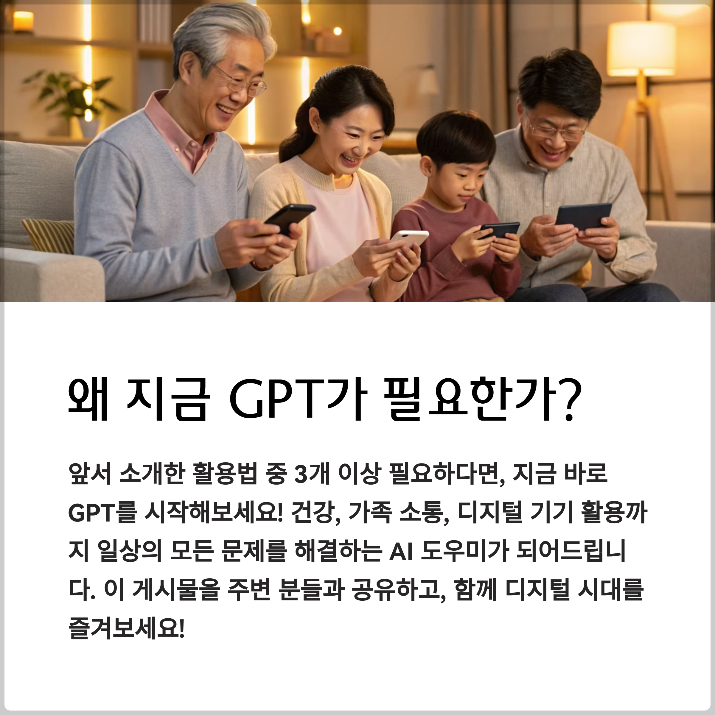 이제 AI는 50·60대에게도 꼭 필요한 생활 파트너입니다.