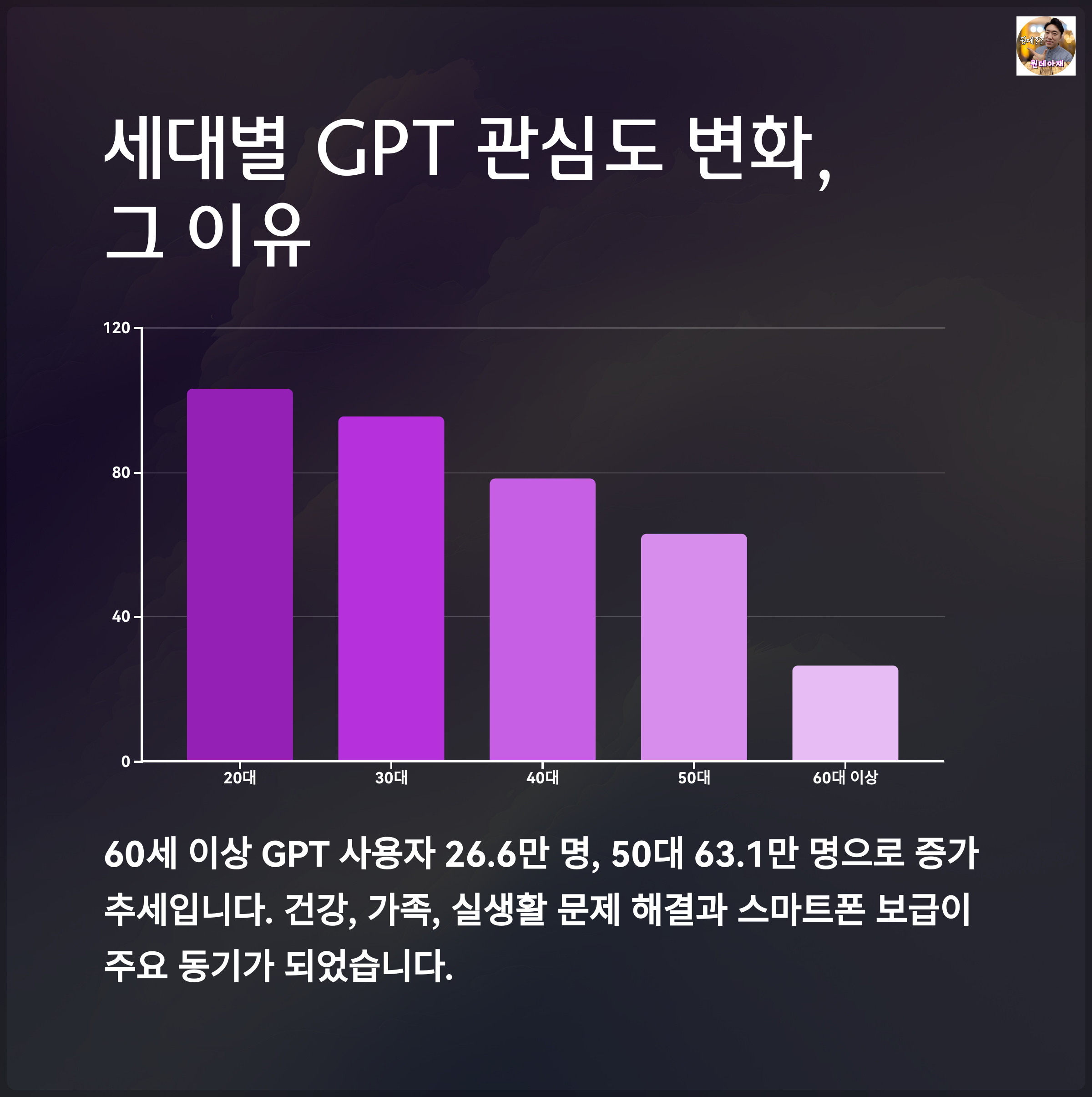 특히 손주와의 소통, 건강관리, 민원 서류 작성 등 현실적인 문제 해결을 위해 GPT를 찾는 사례가 늘어나고 있죠.