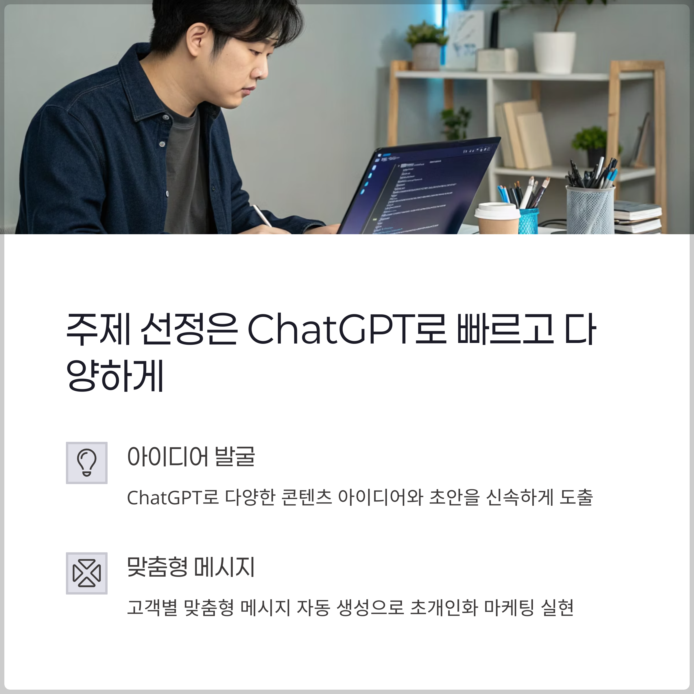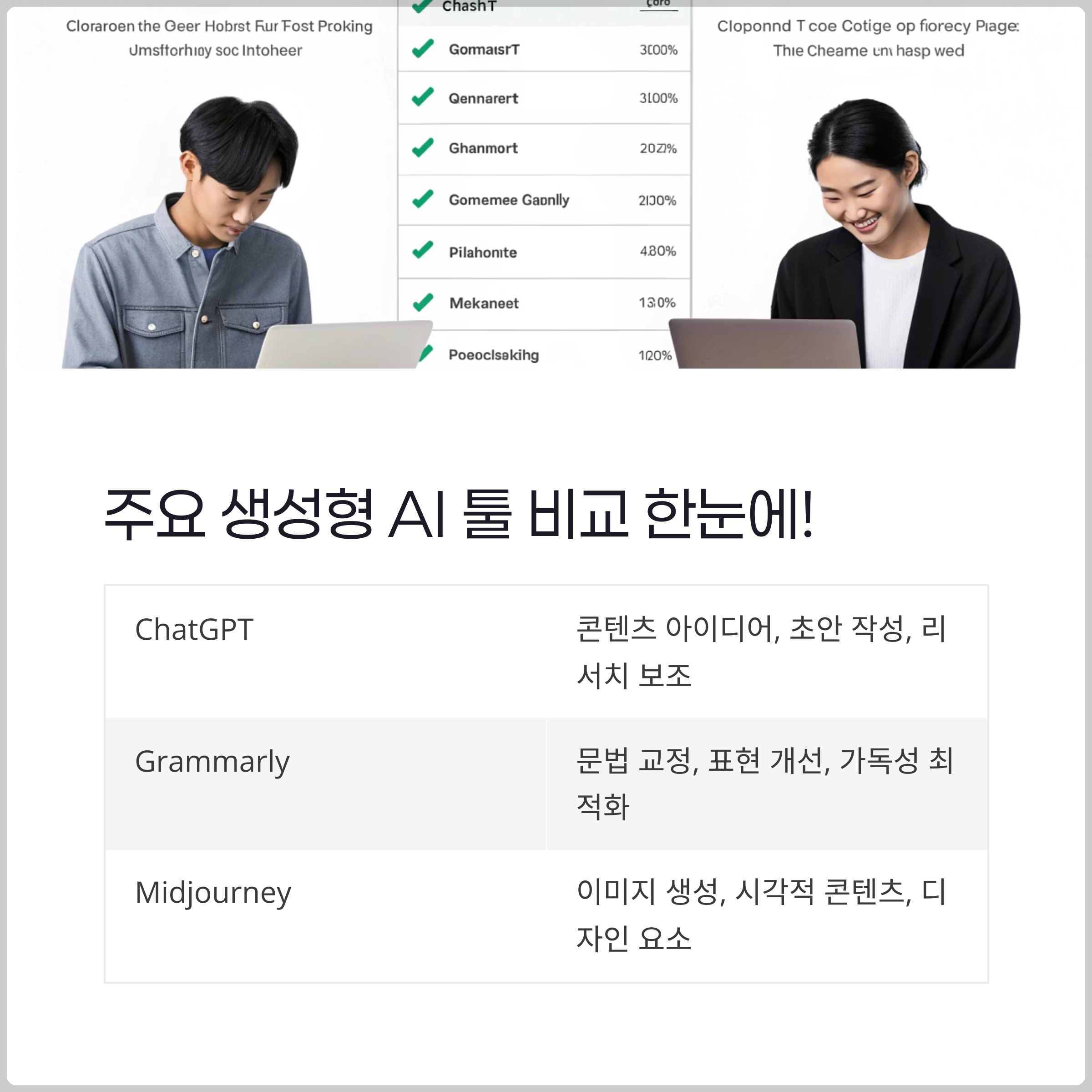 | ChatGPT | 아이디어 생성, 글쓰기, 질의응답 | 콘텐츠 초안 작성 및 자료 조사 |