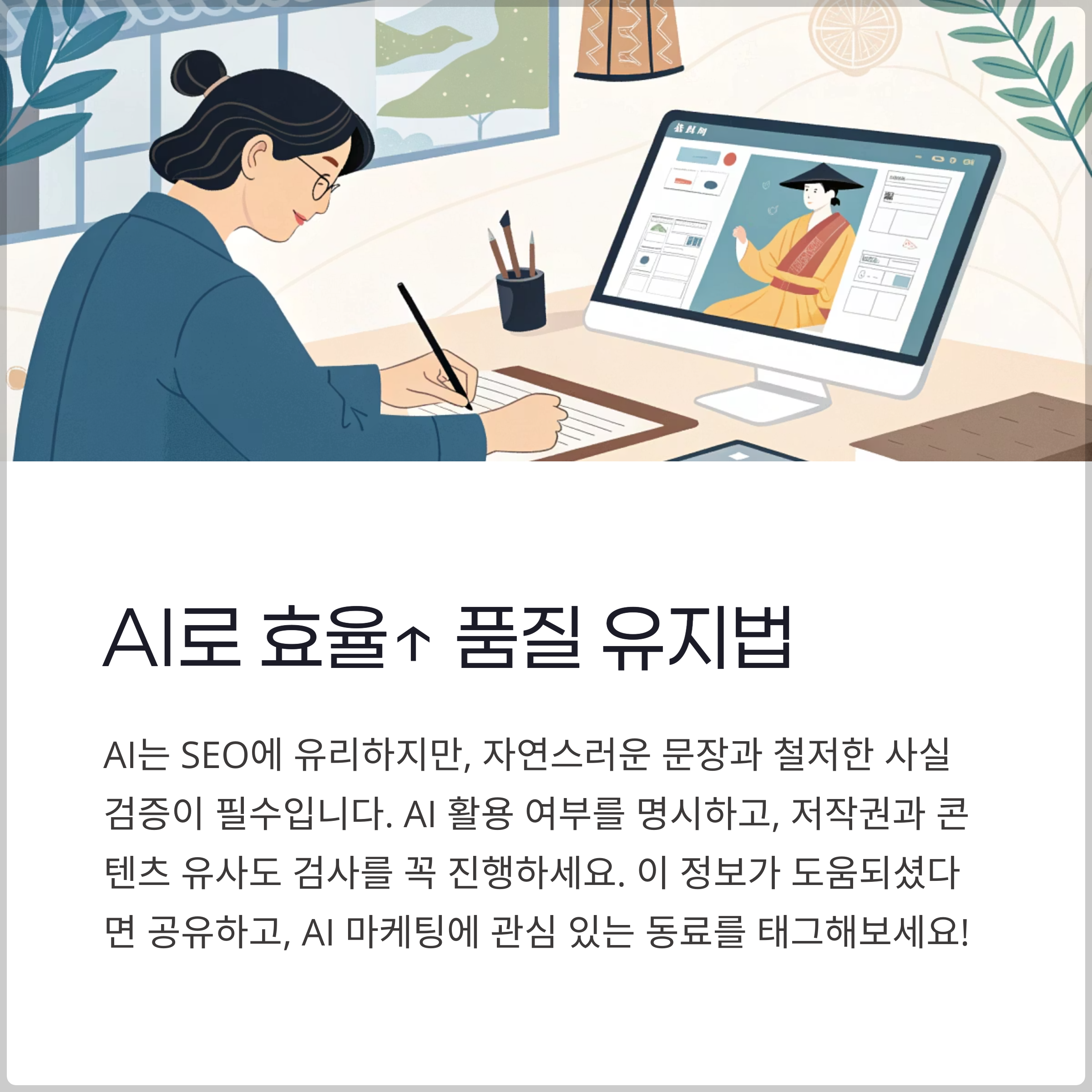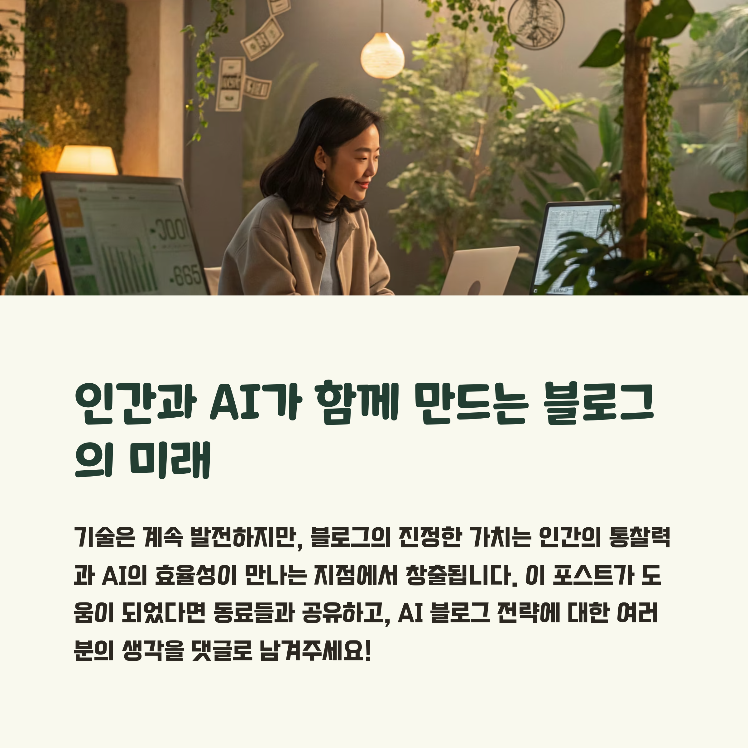 오히려 반대입니다. AI가 도와주는 만큼, 블로거는 큐레이션, 편집, 진정성 있는 콘텐츠로 차별화를 꾀할 수 있습니다. 기계가 줄 수 없는 감성, 경험이 더 중요해지는 시대입니다.
