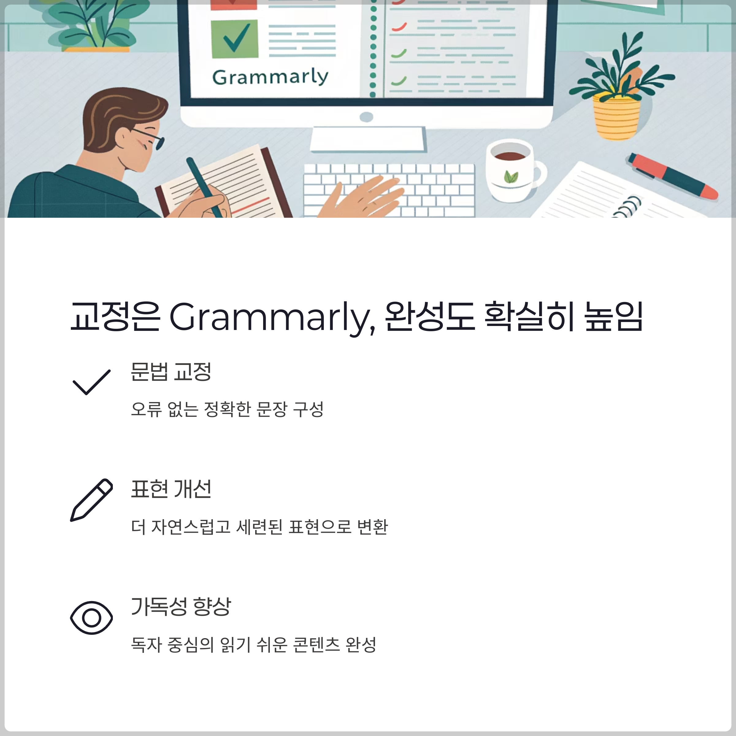 | Grammarly | 문법 및 스타일 교정 | 문장 정제 및 표현 개선 |
