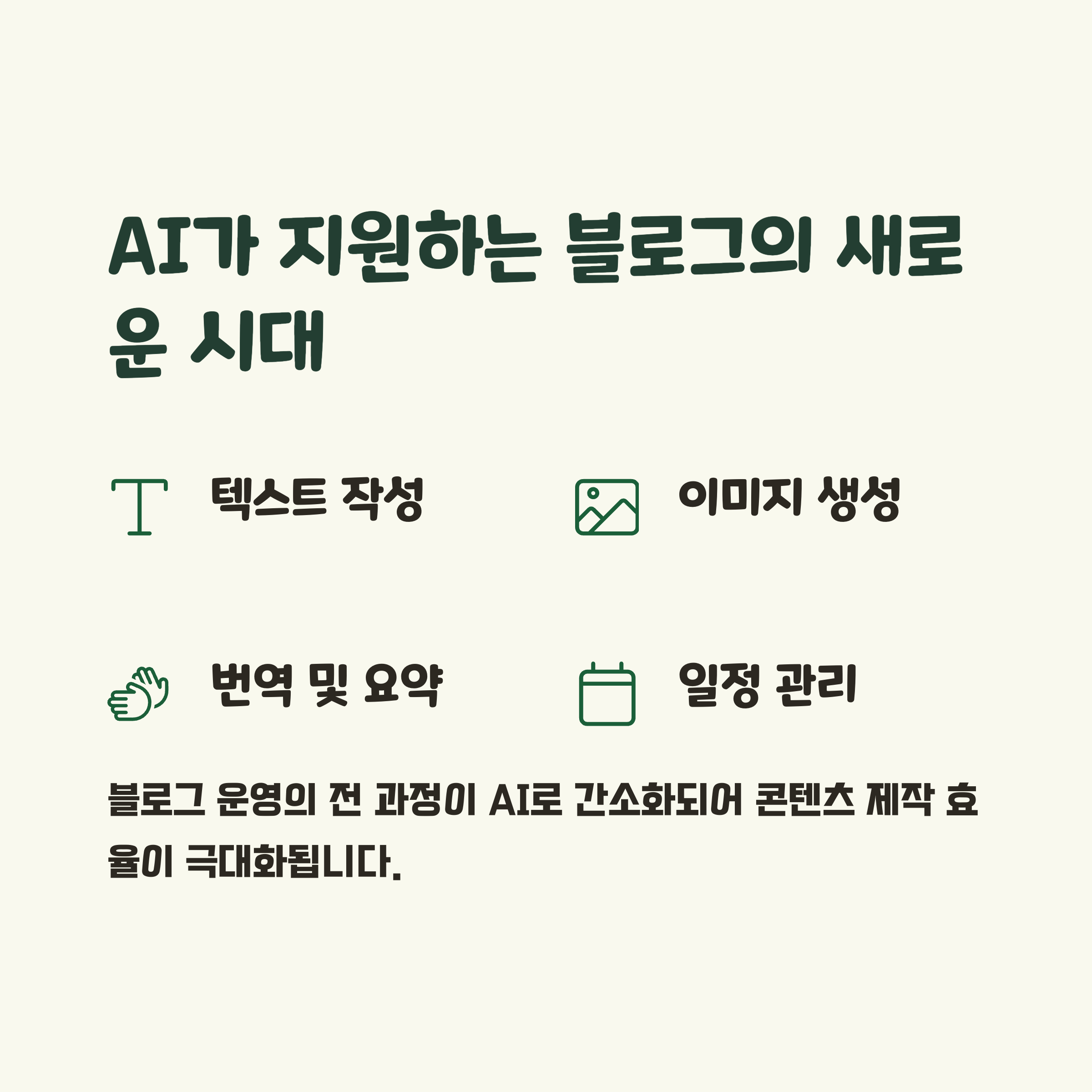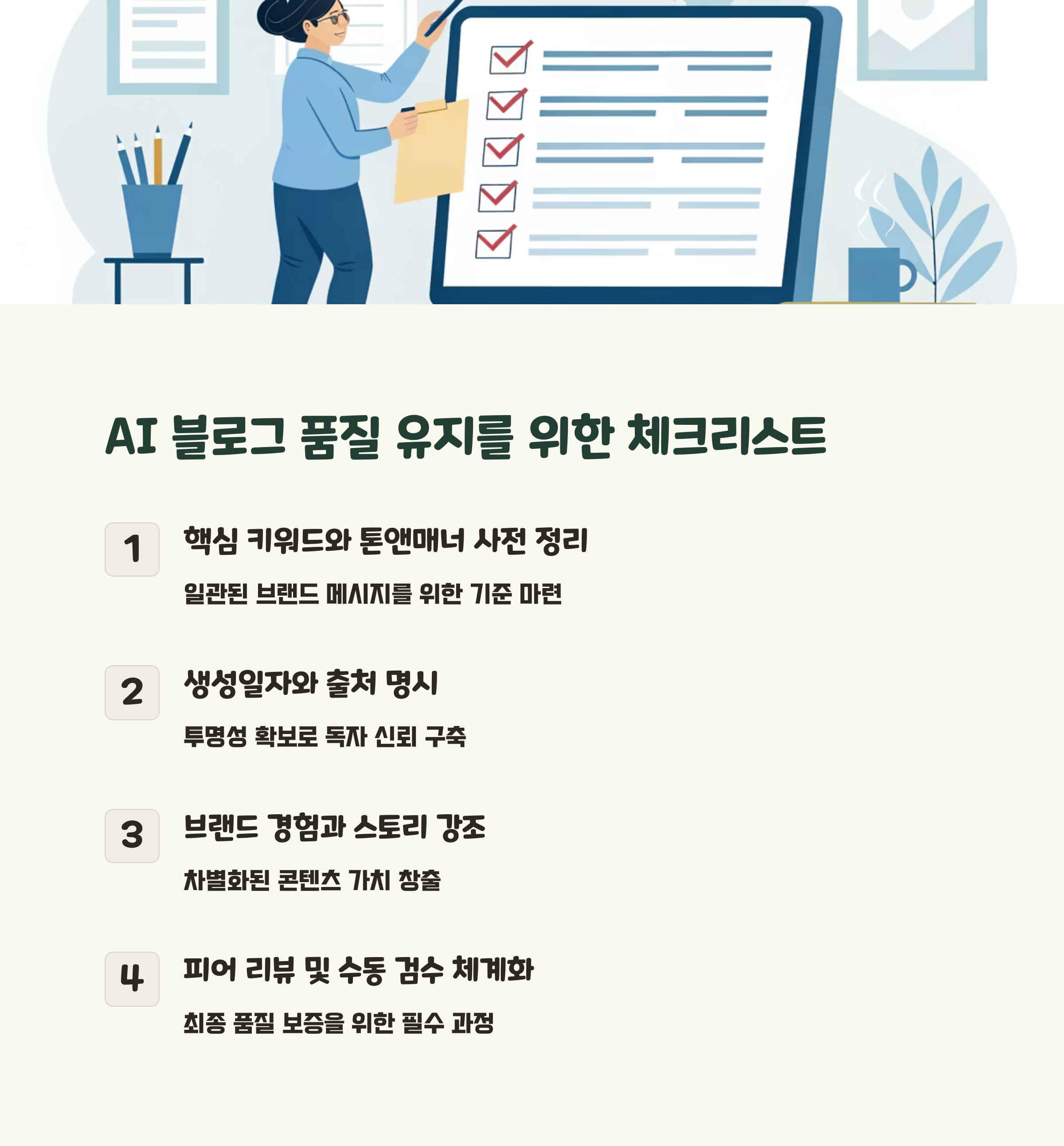 생성형 AI는 블로그 콘텐츠를 보다 효율적으로 만들 수 있는 강력한 도구지만, 결국 최종 퀄리티를 결정짓는 건 인간의 손끝입니다. 독자에게 신뢰받는 블로그를 운영하고 싶다면, AI와 협업하되 항상 검수하고, 브랜드의 감성을 담는 것을 잊지 마세요. 여러분만의 목소리와 철학이 담긴 콘텐츠가 AI 시대에서도 빛을 발하게 될 거예요.😊 블로그 운영에 대한 고민이나 AI 활용 팁이 있다면 댓글로 함께 이야기 나눠요!