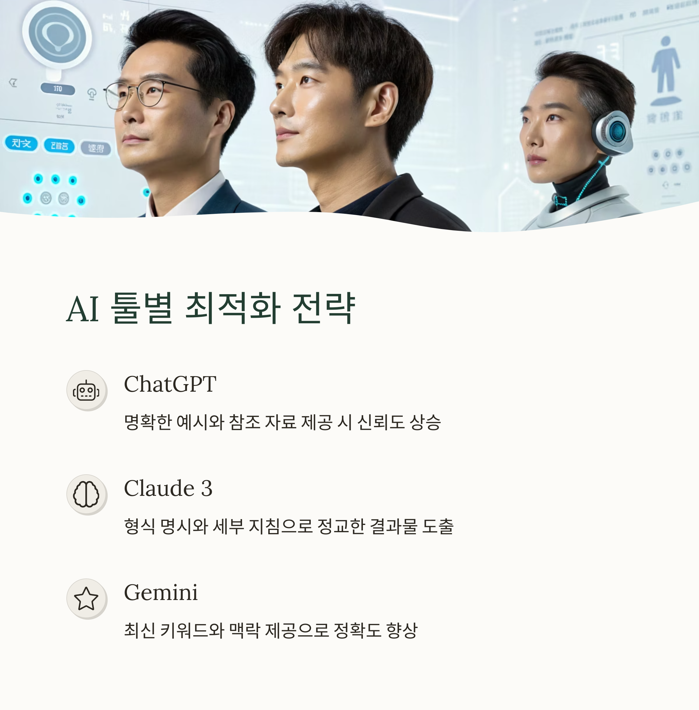 최신 AI 툴인 ChatGPT, Claude 3, Gemini는 최적화된 프롬프트를 입력했을 때 놀라운 정확성과 일관성을 보여줍니다. 예를 들어, SEO 트렌드 블로그를 작성할 때 단순히 "SEO 트렌드 알려줘"라고 입력했을 경우 평이한 답변이 제공됩니다. 하지만 "2025년 블로그 SEO 트렌드 상위 5가지에 대해 표로 정리해줘. 각 항목은 트렌드명, 이유, 활용 팁 포함"이라고 입력하면 다음과 같이 품질이 현격히 상승합니다.