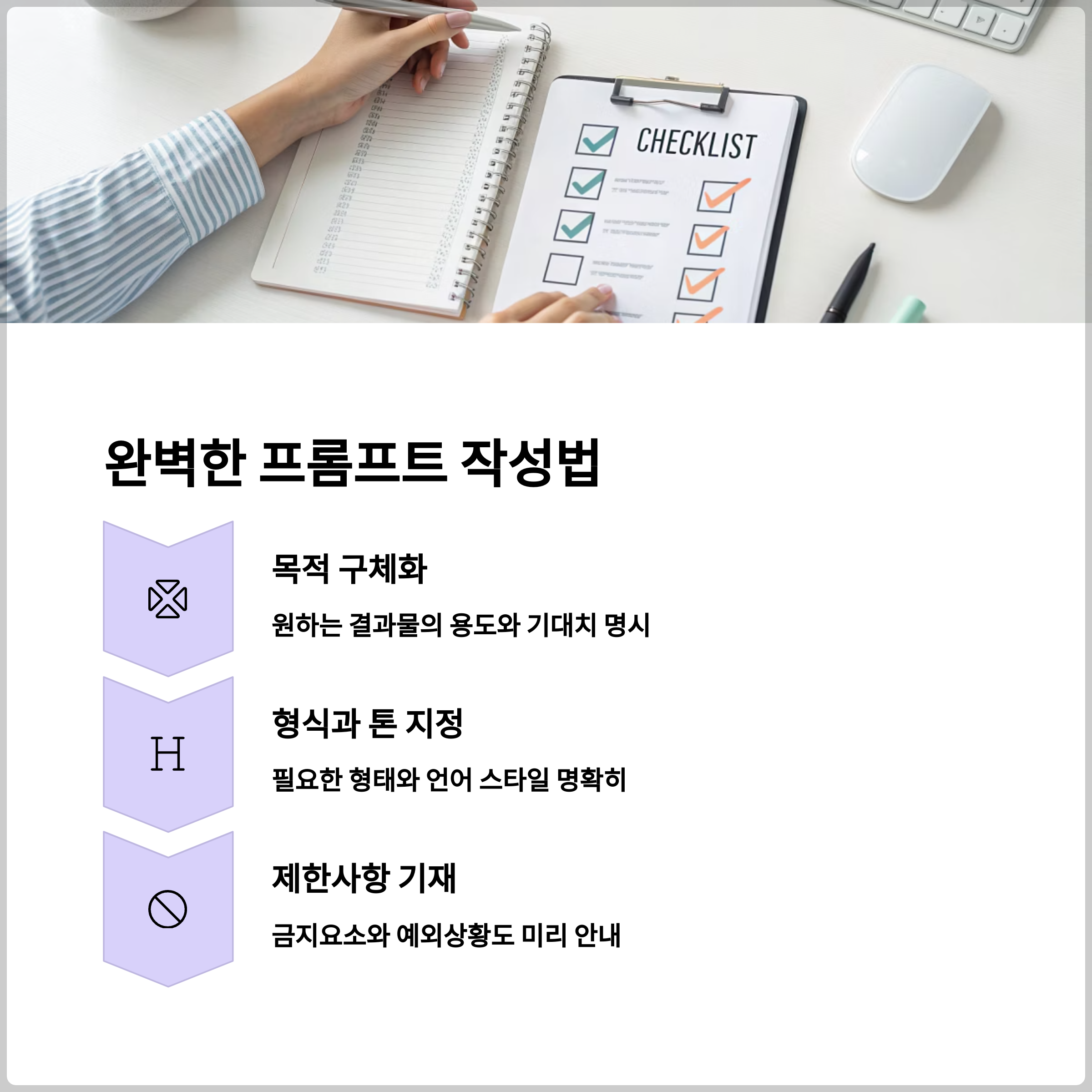 - 1. 명확한 지시 – “트렌드 설명”이 아닌 “2024년 기준, 주요 AI 트렌드 3가지 요약”