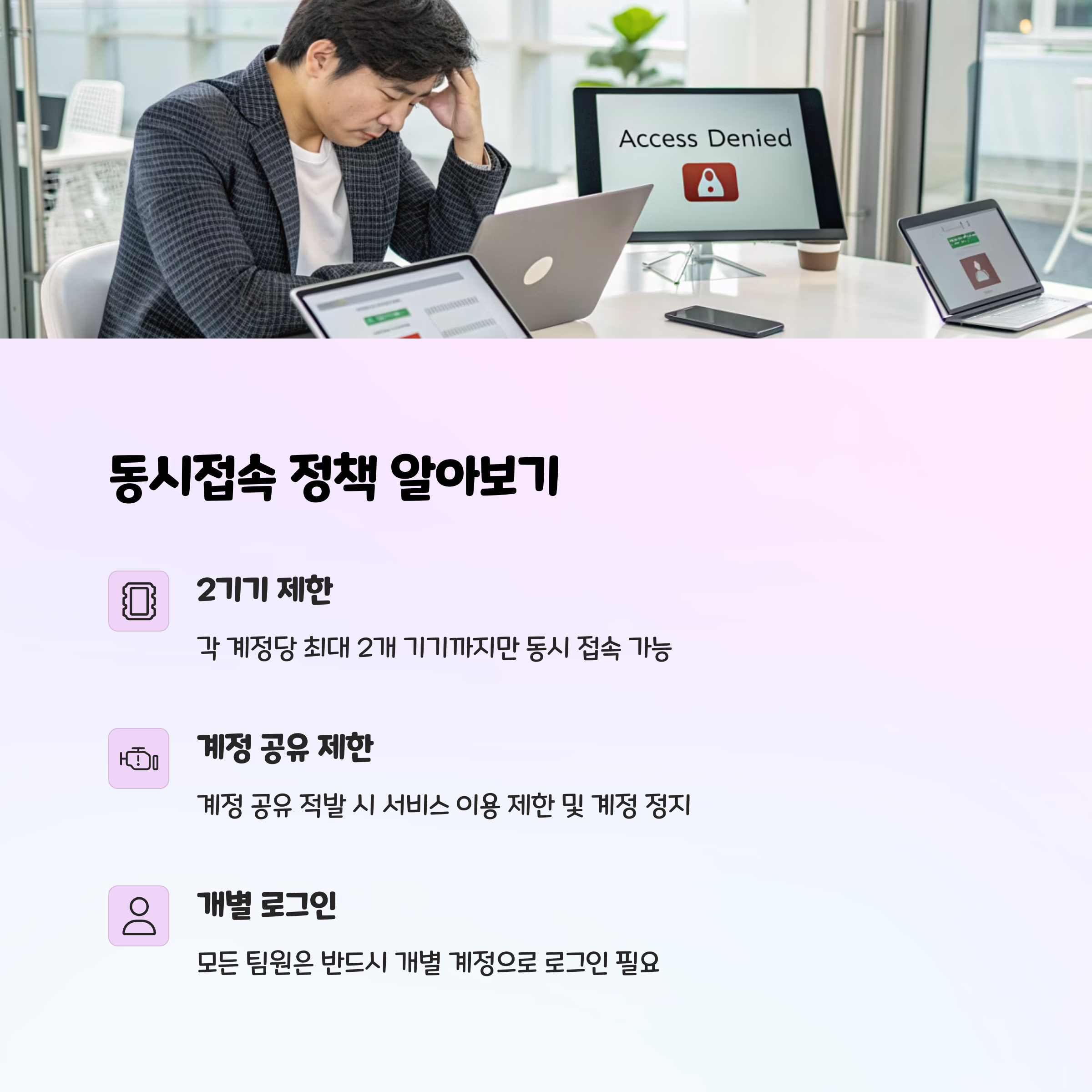 계정 정책, 동시접속 한도, 그리고 데이터 보안까지 꼼꼼히 살피고, 이 글에서 소개한 팁을 활용해 효율적으로 운영해보세요!