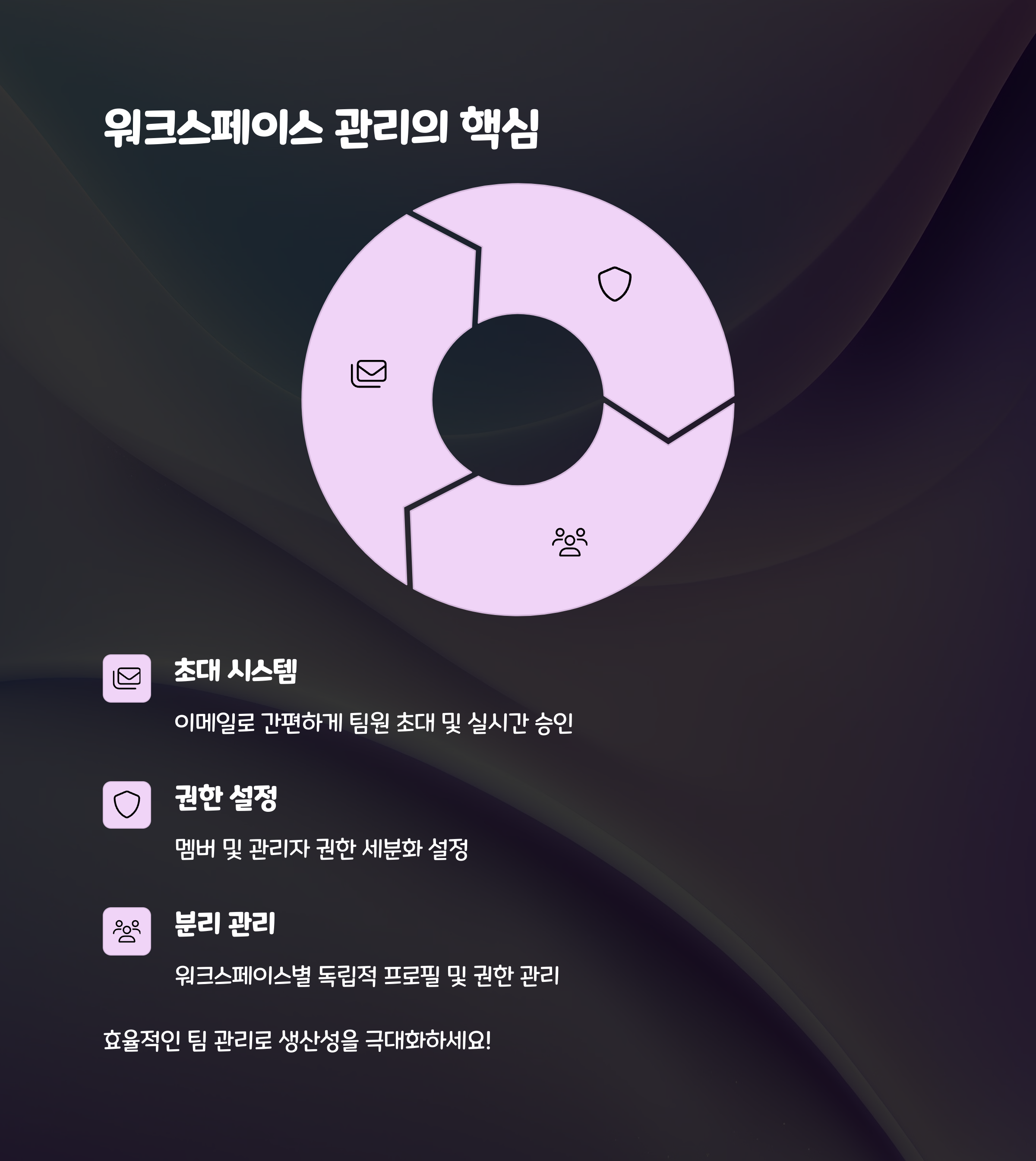 - 워크스페이스 생성 후, 이메일 초대를 통해 팀원 초대
