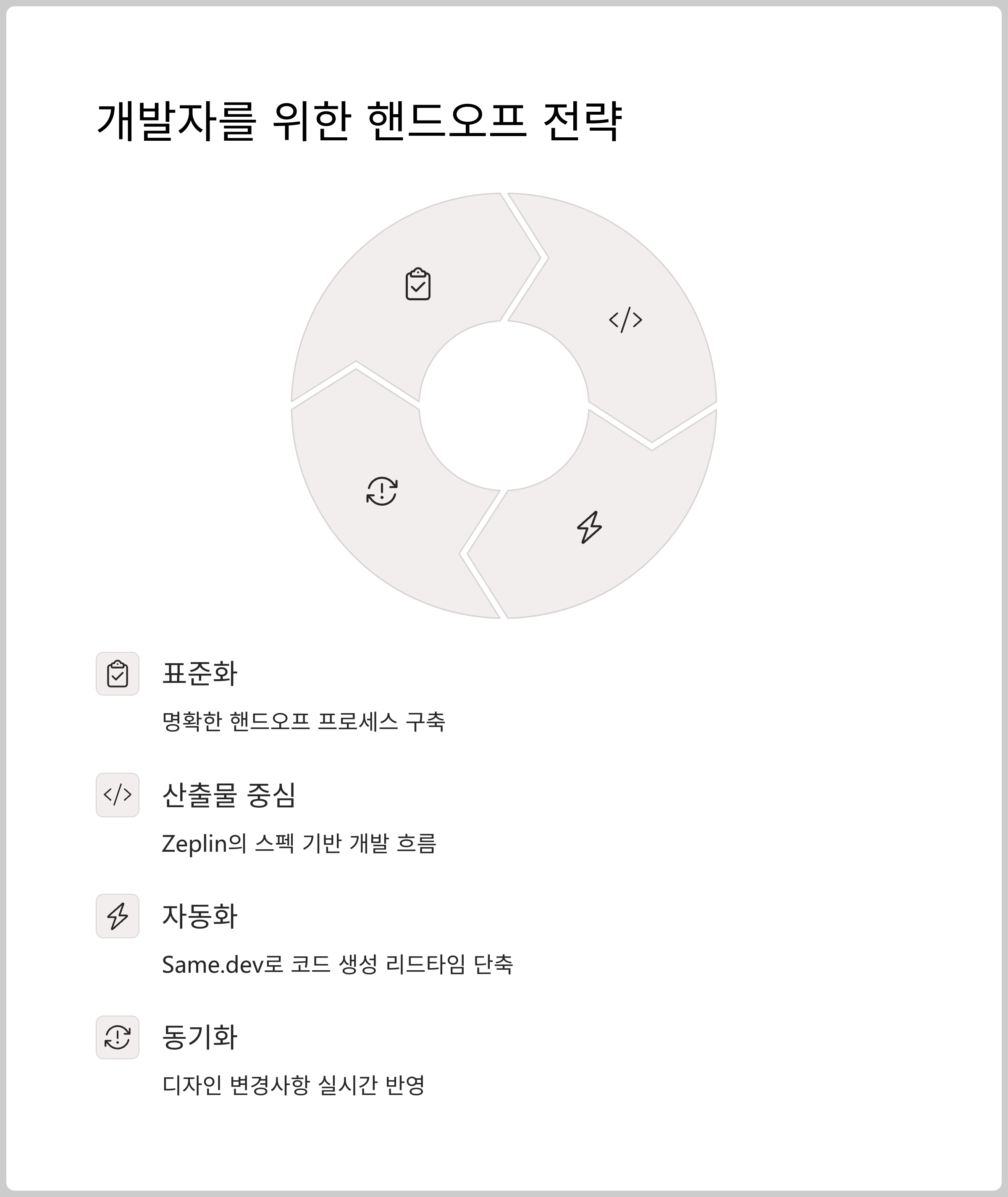 | Figma to Zeplin | 빠른 스펙 전달, 버전 관리 용이 | 초기 설정 필요 |